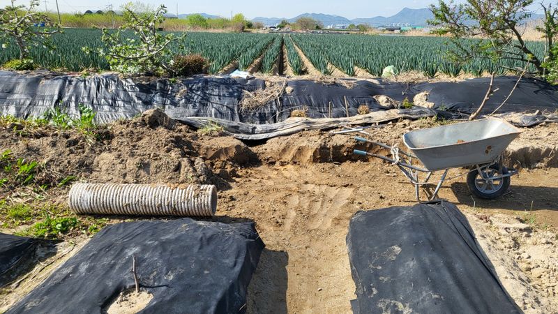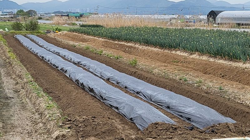 고랑 제초매트 설치 및 대파 2판 정식