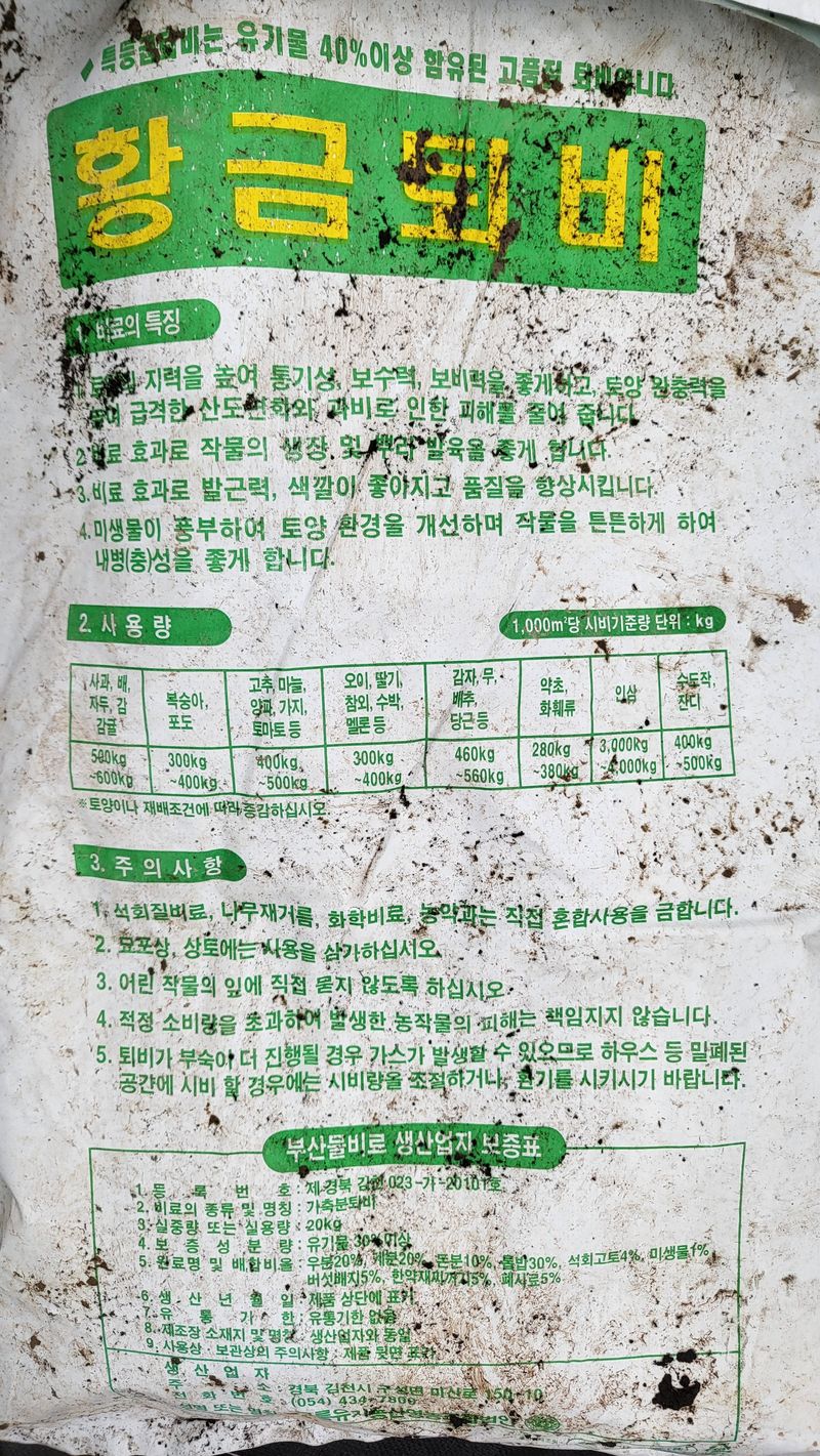 정식 준비, 퇴비 8포, 요소 5kg