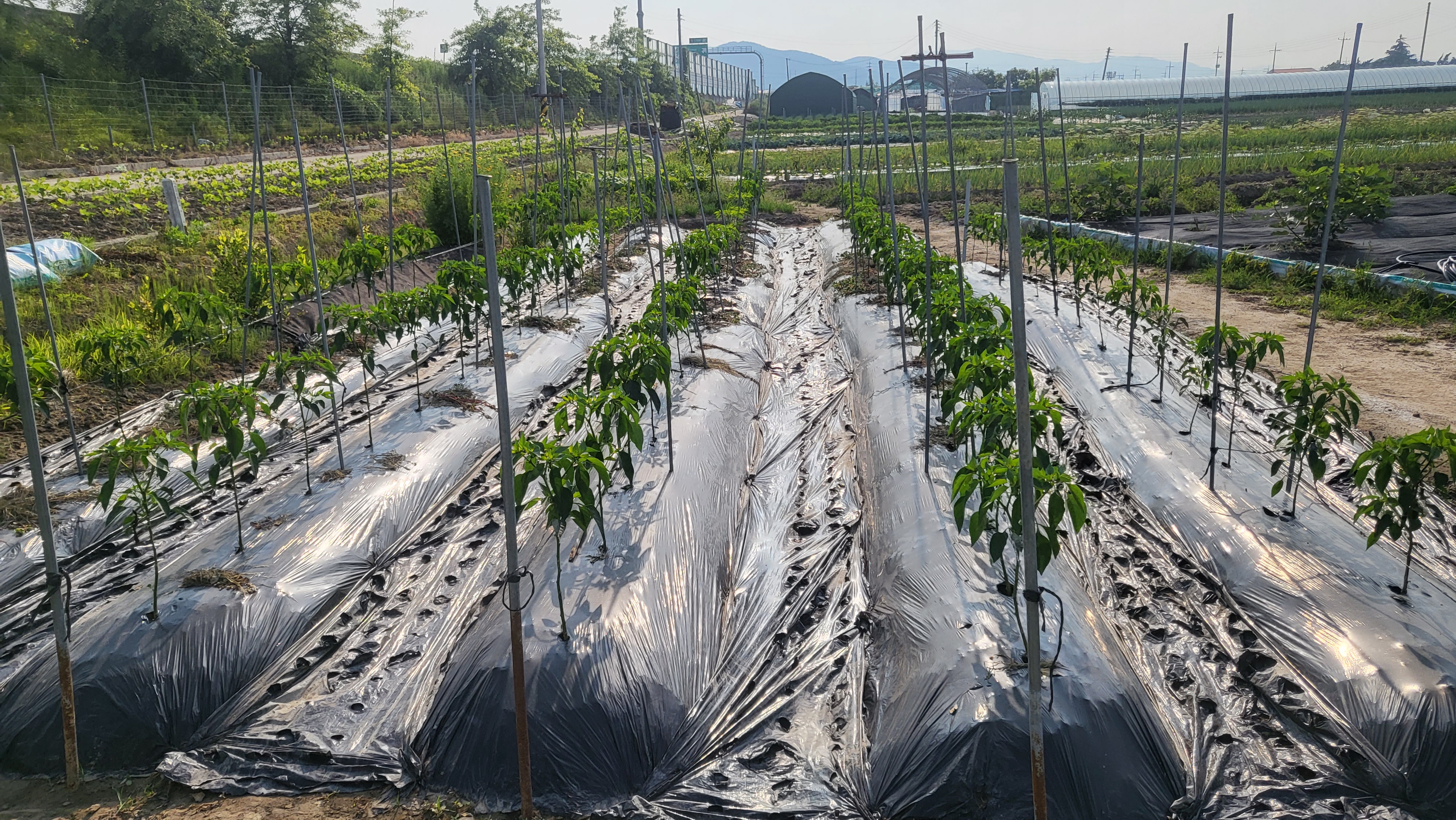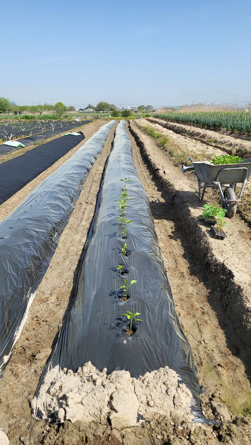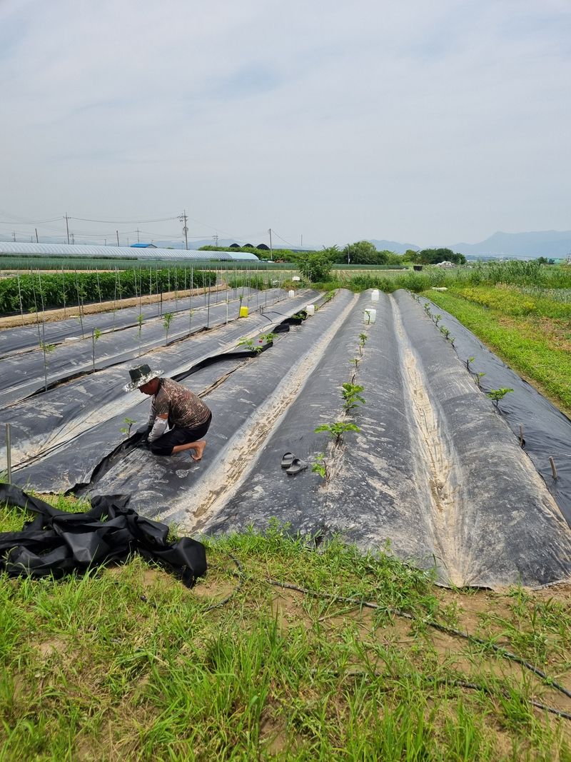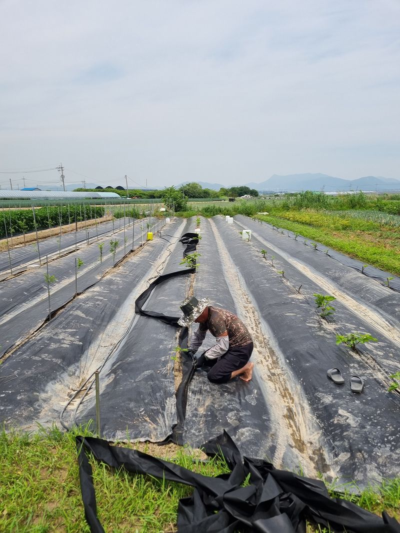 고랑 제초매트 설치 및 매운고추 18모 정식