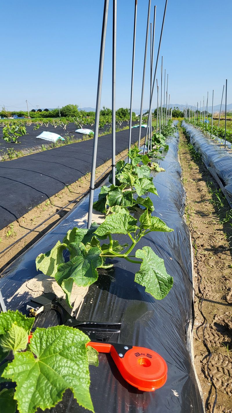 오이, 고추 유인줄. 제초제(바스타, 근사미). 제초작업(3배 식초) 7시간 작업 끝