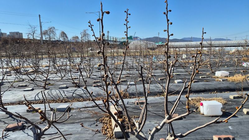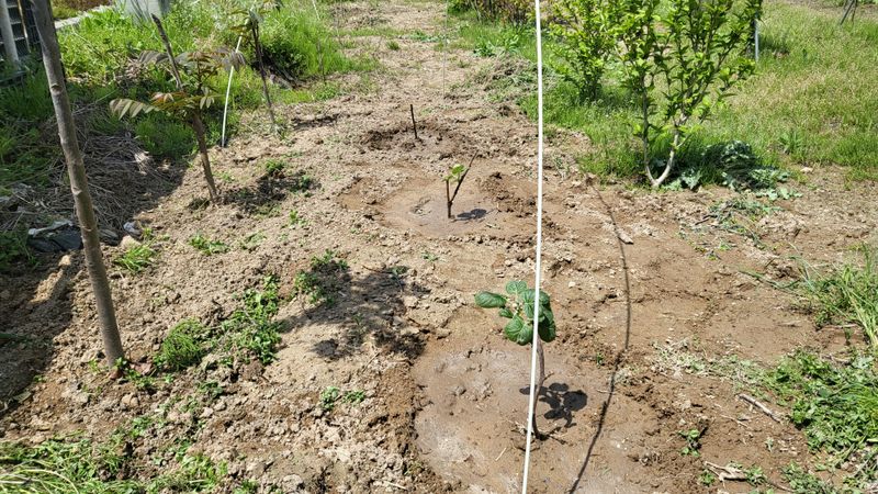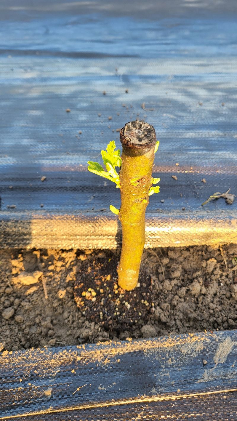 무화과 묘목 새싹이 돋고 있습니다. 제초작업 등