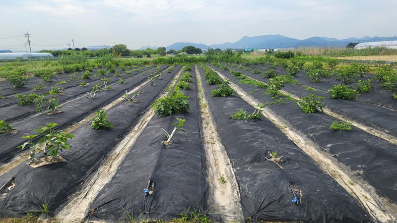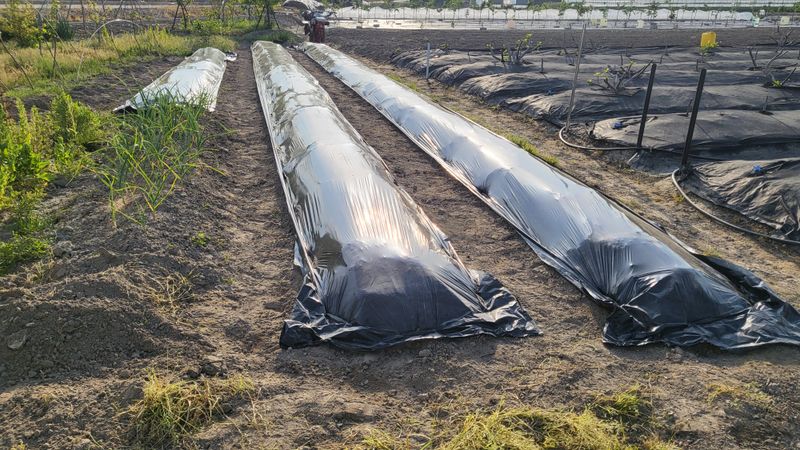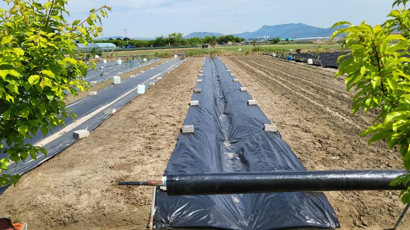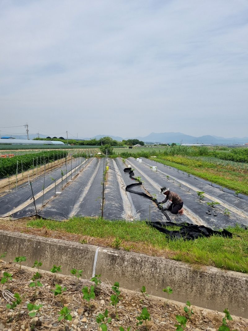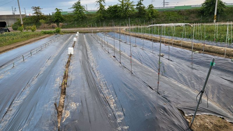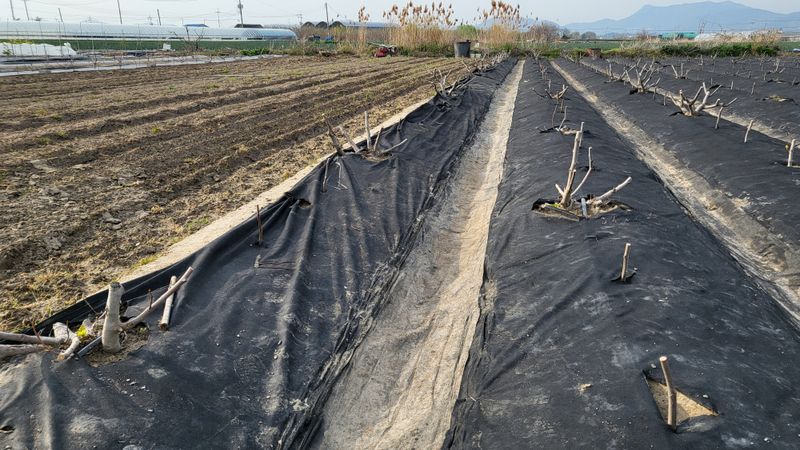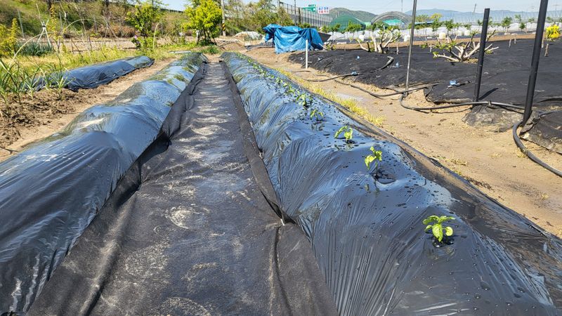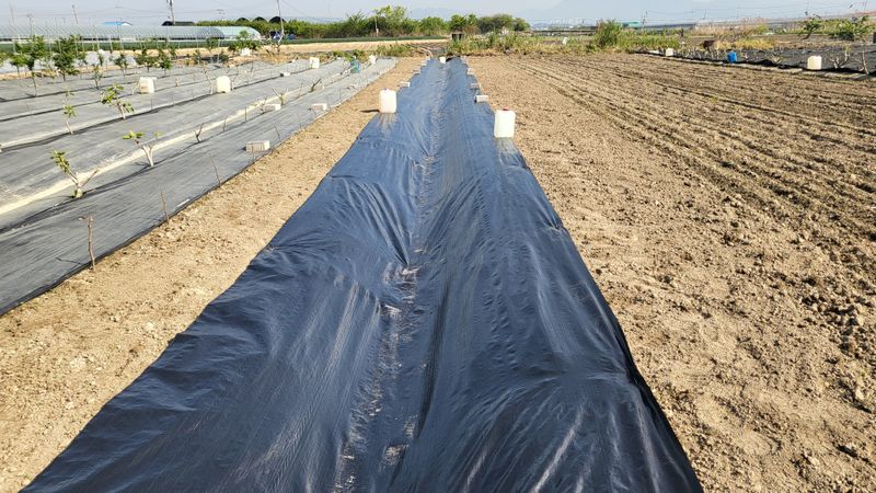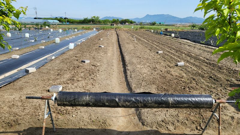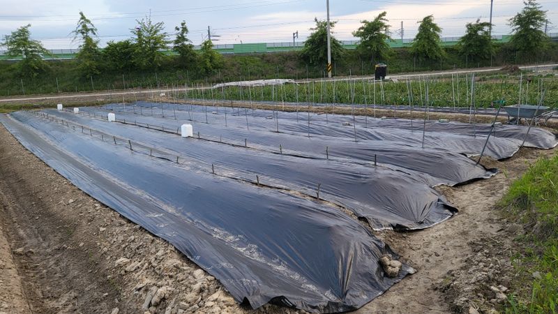 골에 폐비닐 씌우기(잡초, 탄저병 예방)