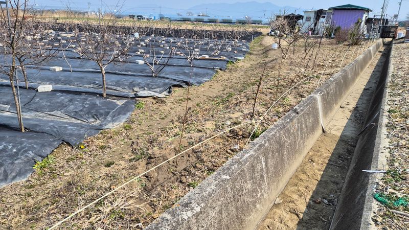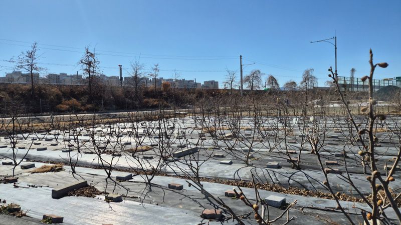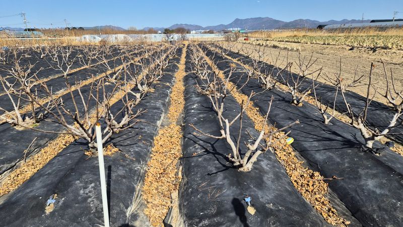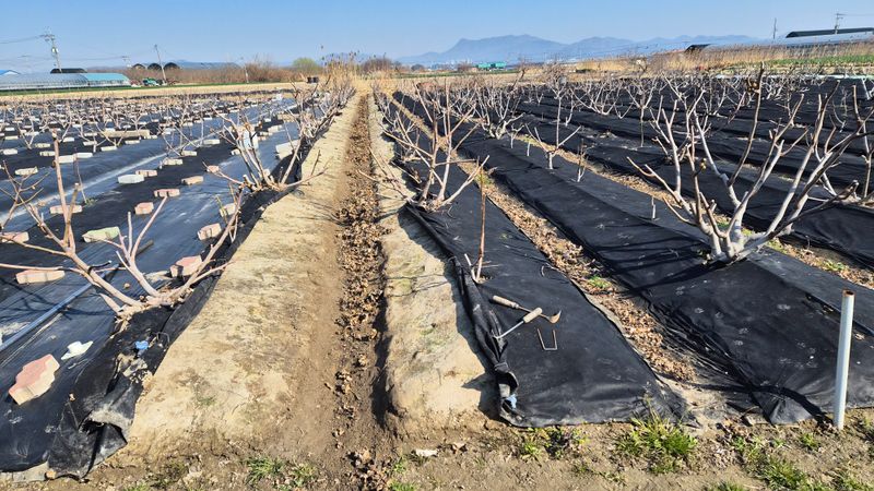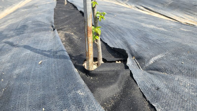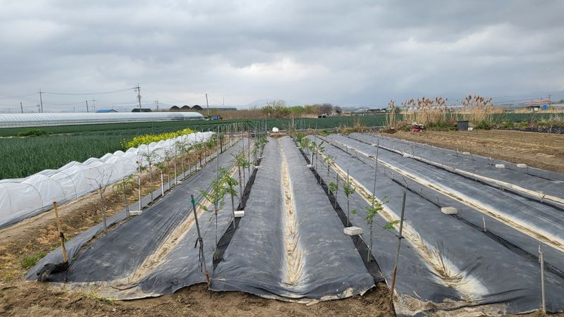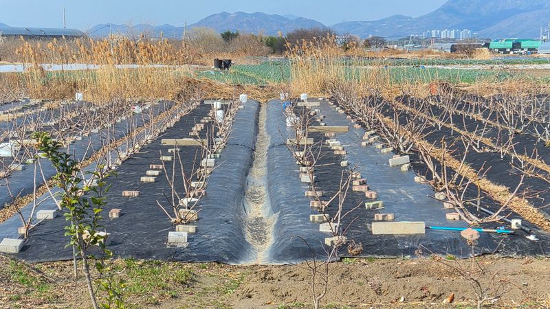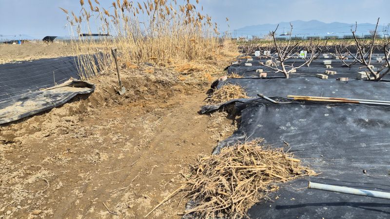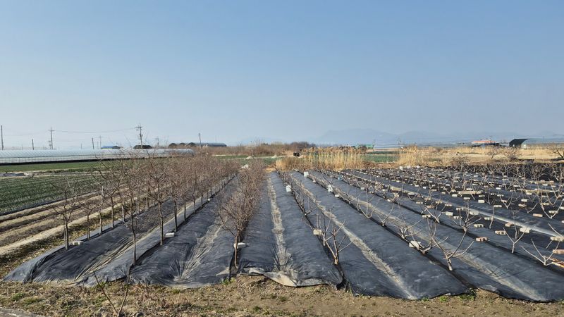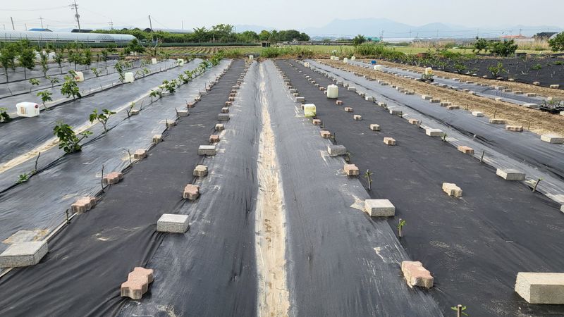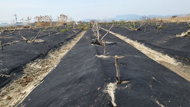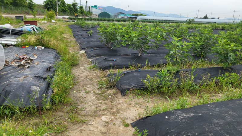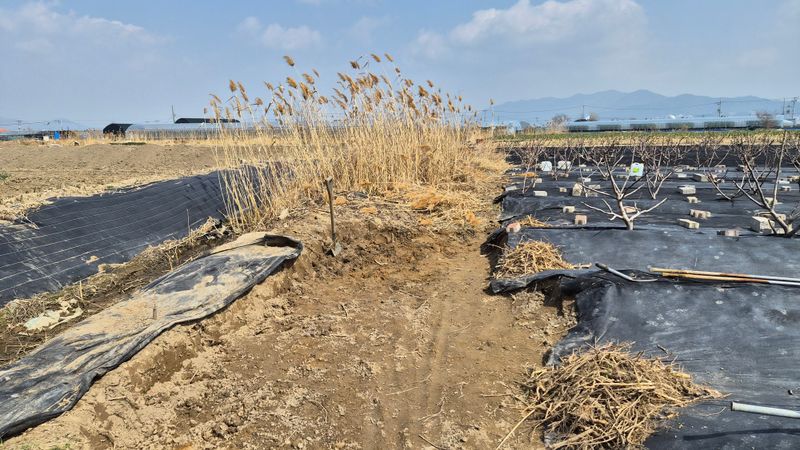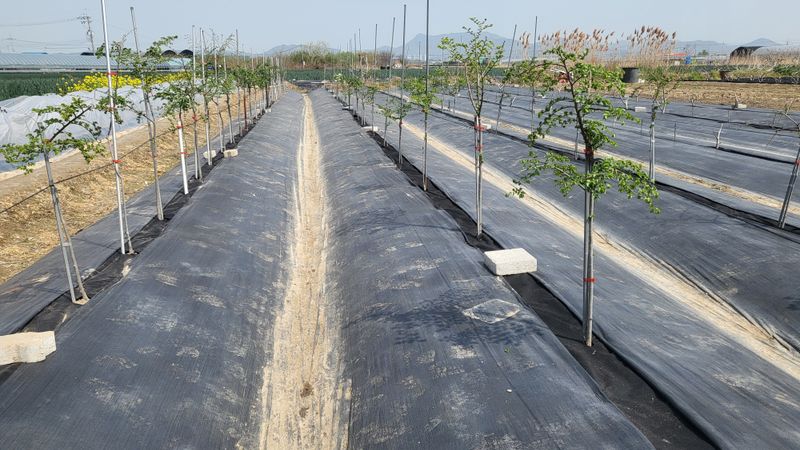 느릅나무 이랑에 부직포 제초매트 추가 설치