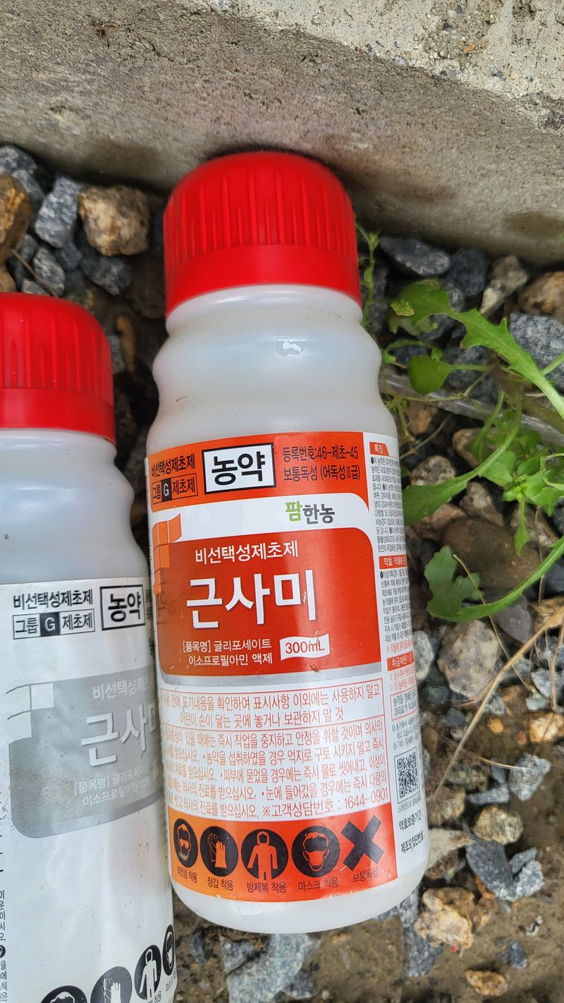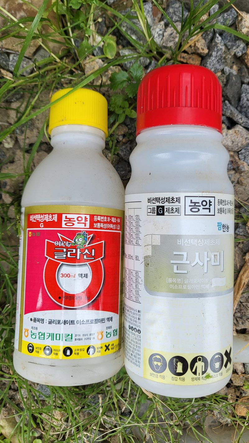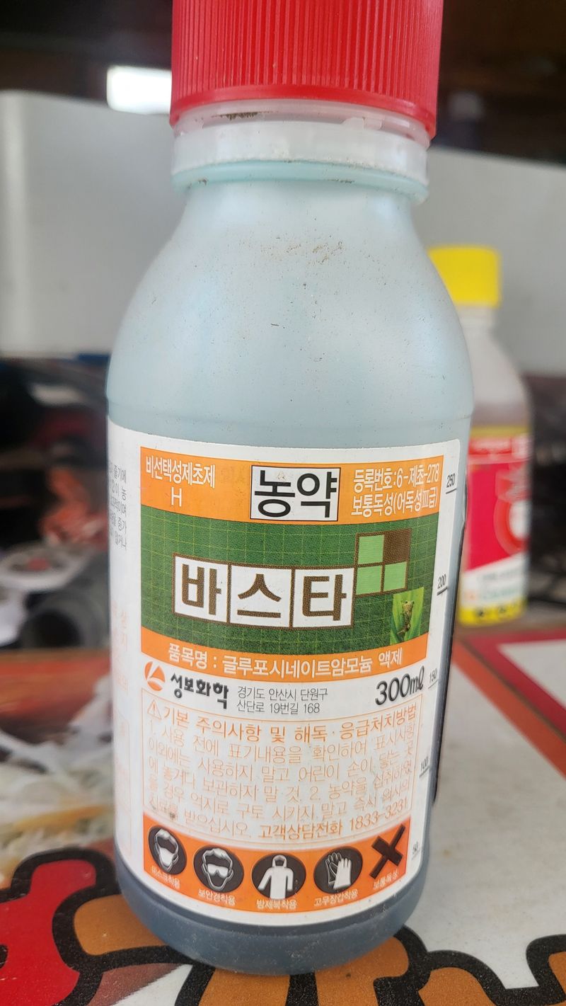 바스타 제초제 살포(60리터) 한말씩 3회 살포 물 20리터당 60ml