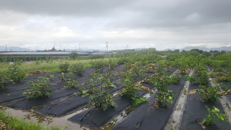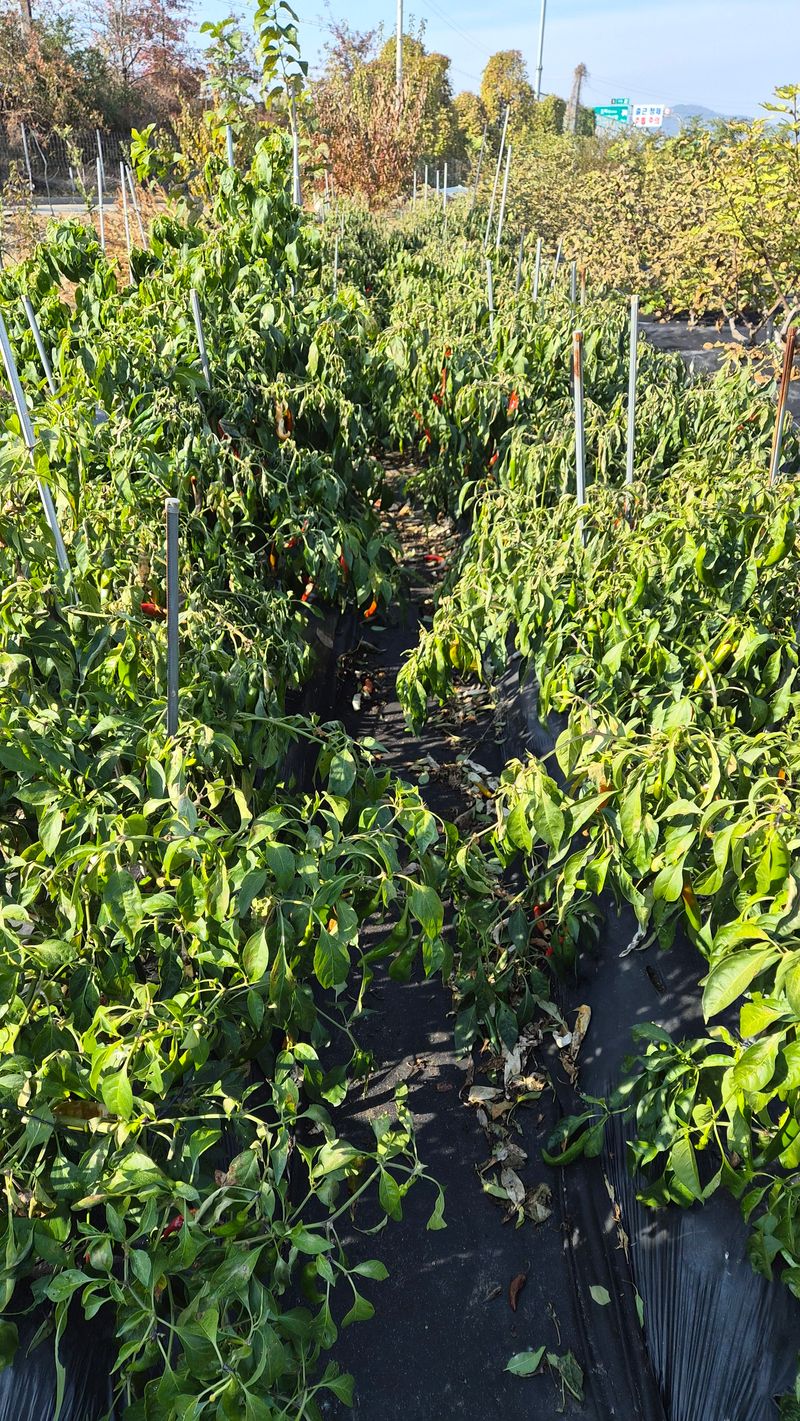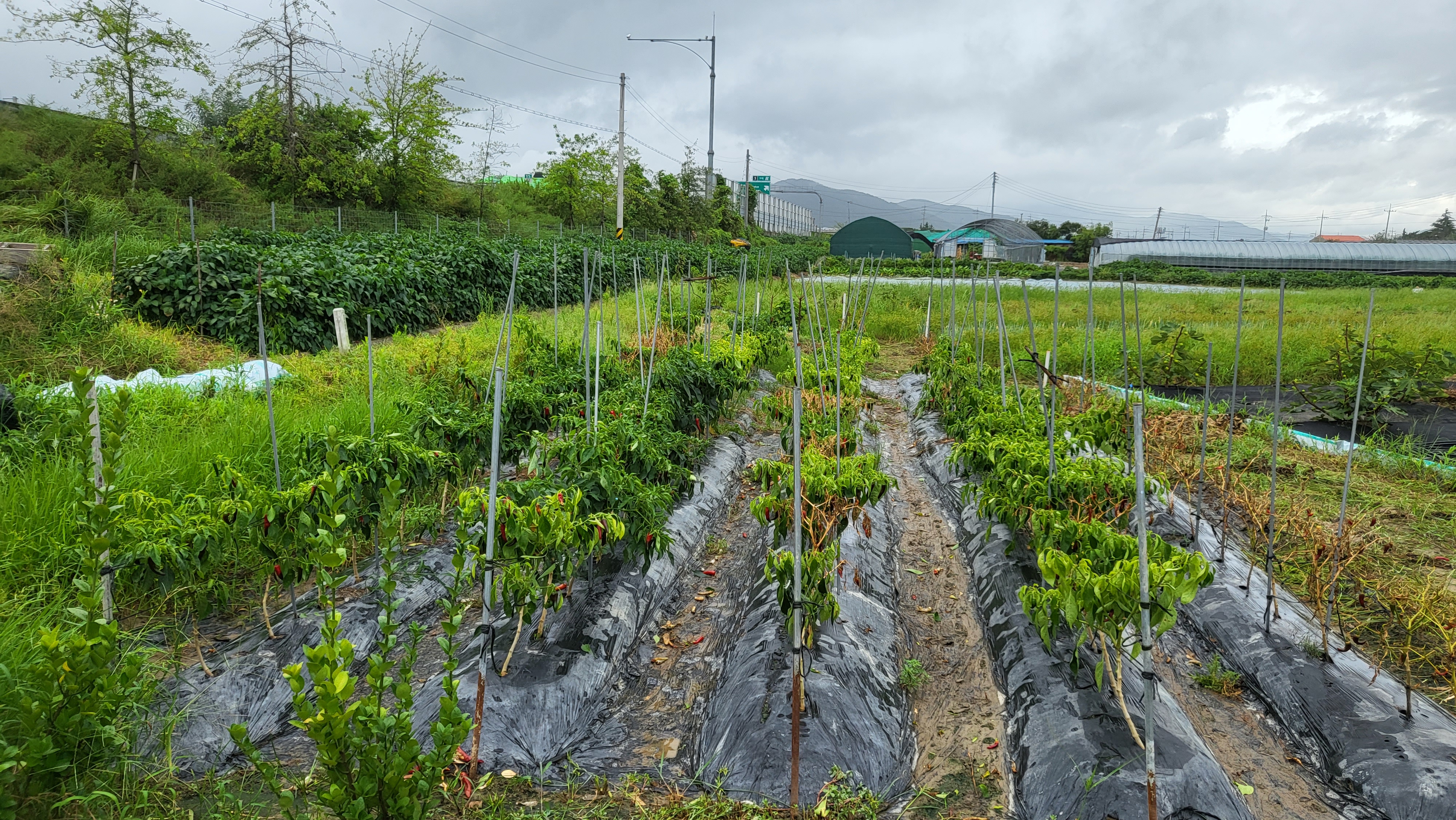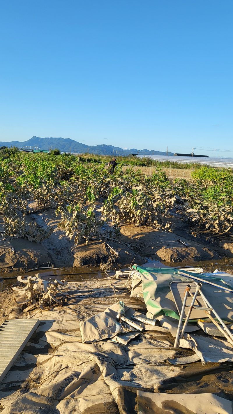 태풍에 고추밭 몰살이네요