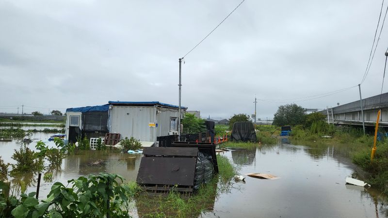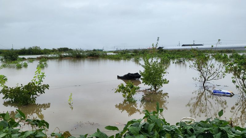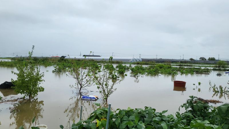 평강천 범람으로 농막까지 침수.