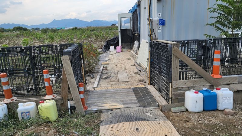 농장 화장실 설치중