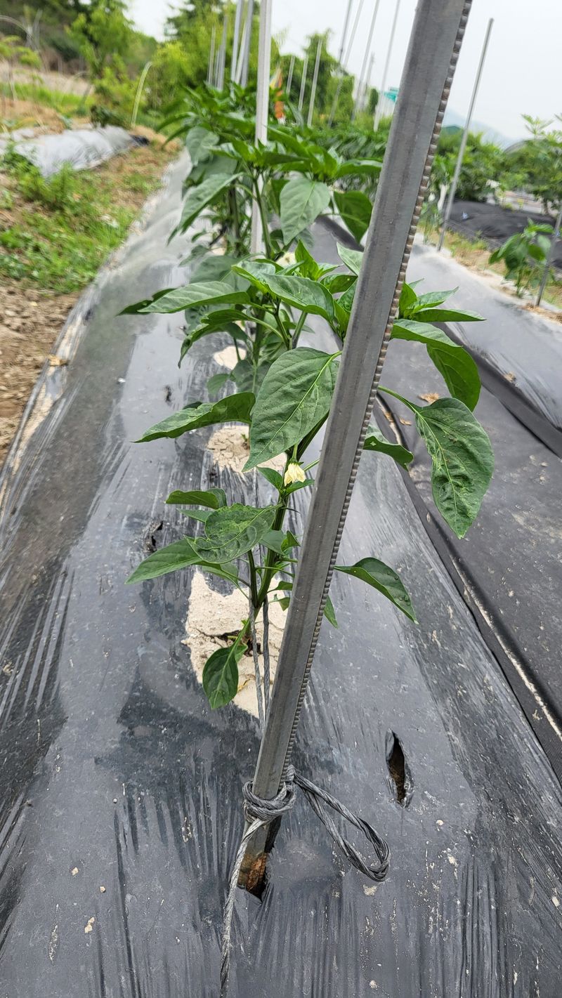 고추 탄저병약, 나방, 진딧물 살포 및 유인줄 작업
