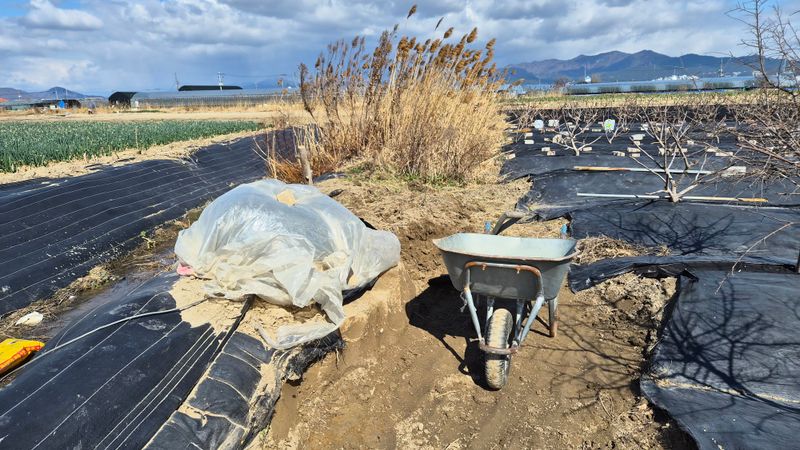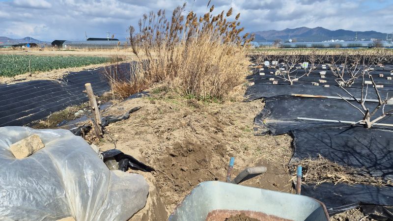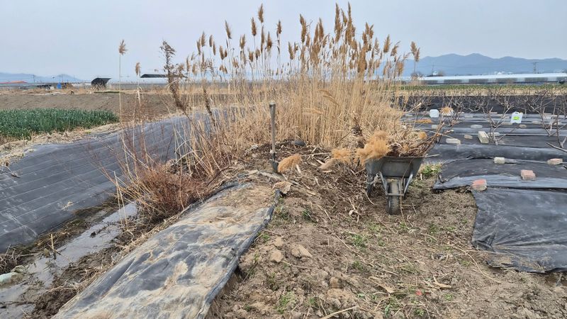 고추밭 비닐 및 부직포 제거, 겨울 내 미루다 봄맞이 소소한 뒷처리