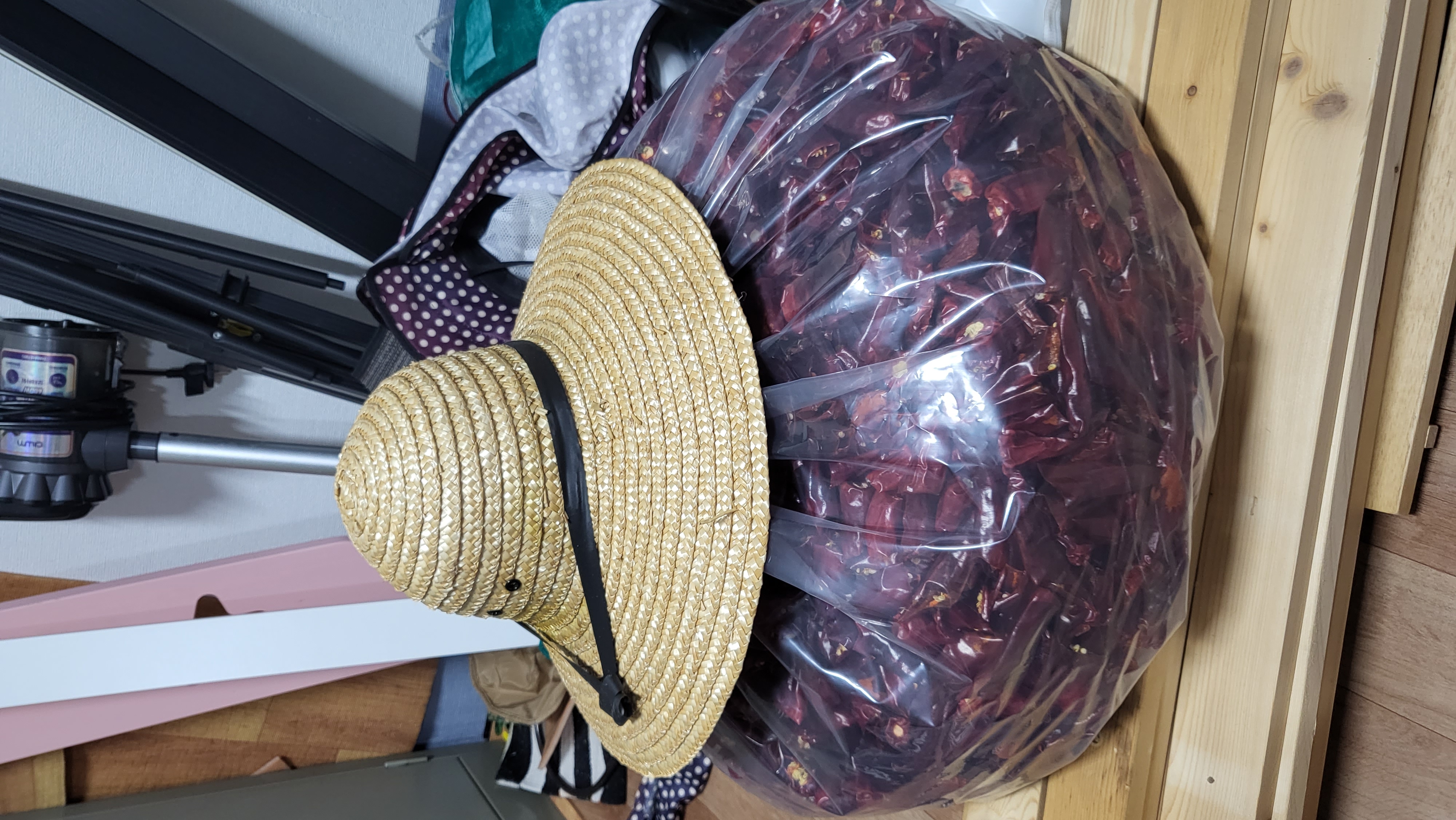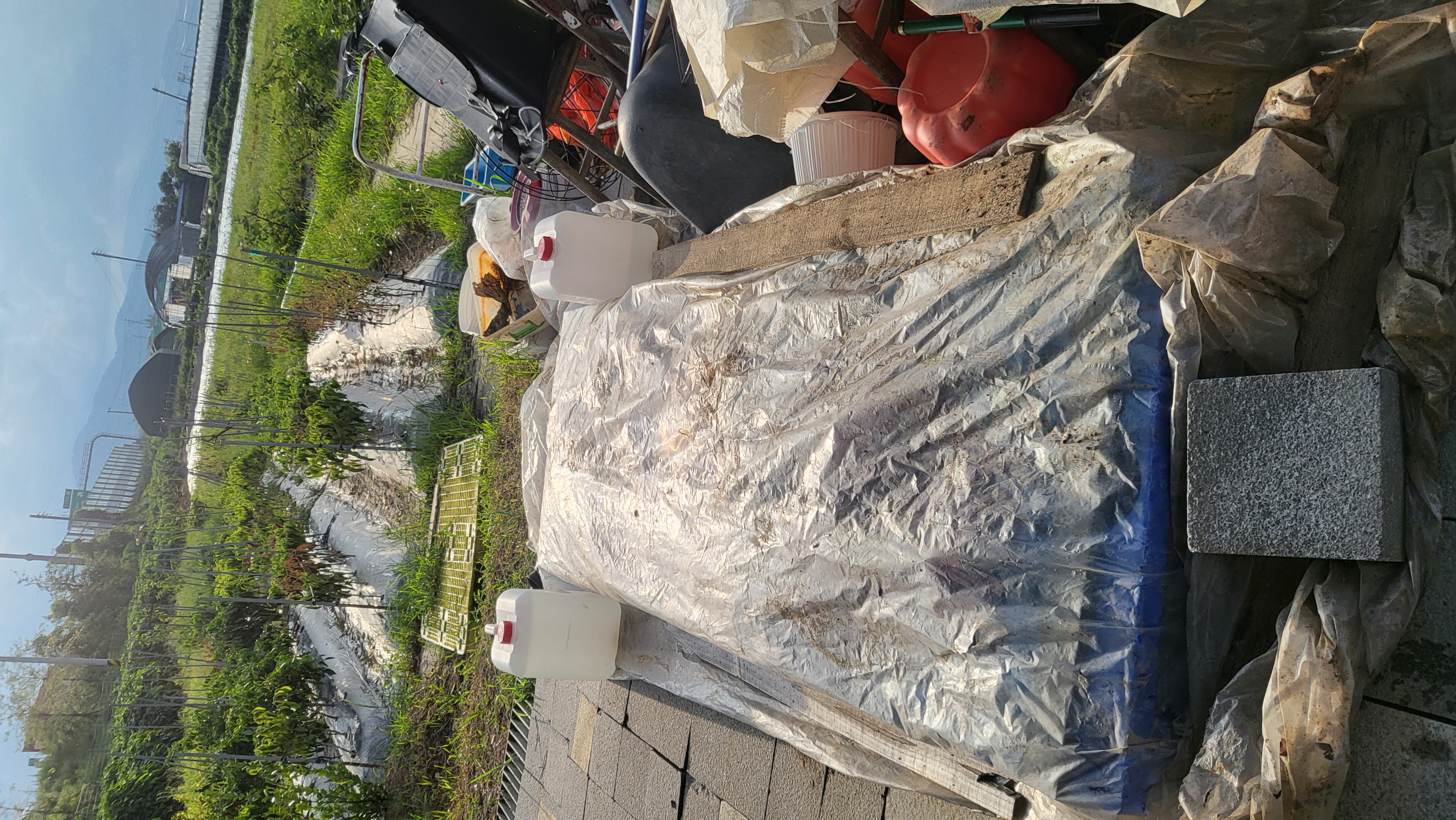 내일 비온다기에 비닐로 임시 포장 말림