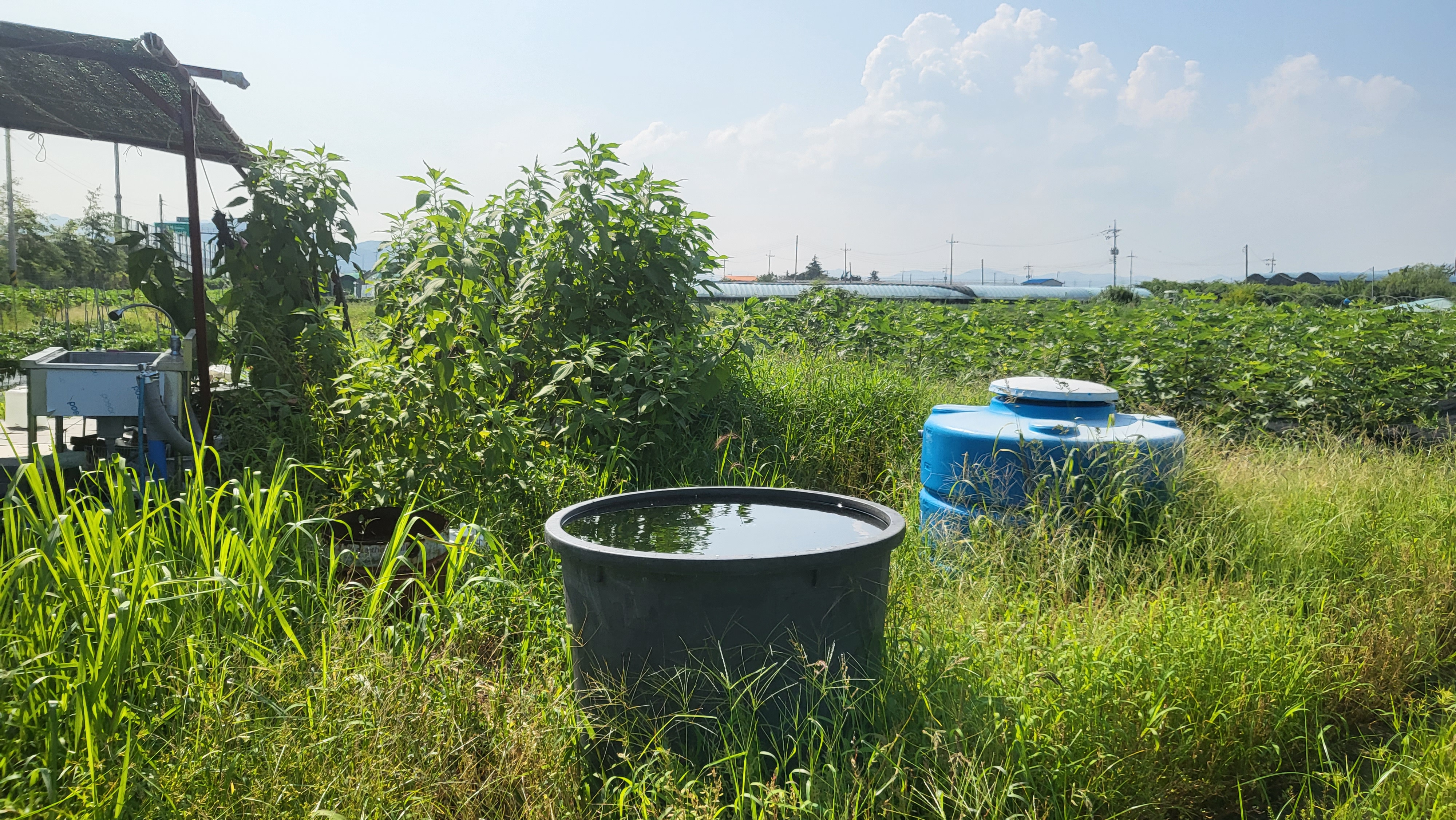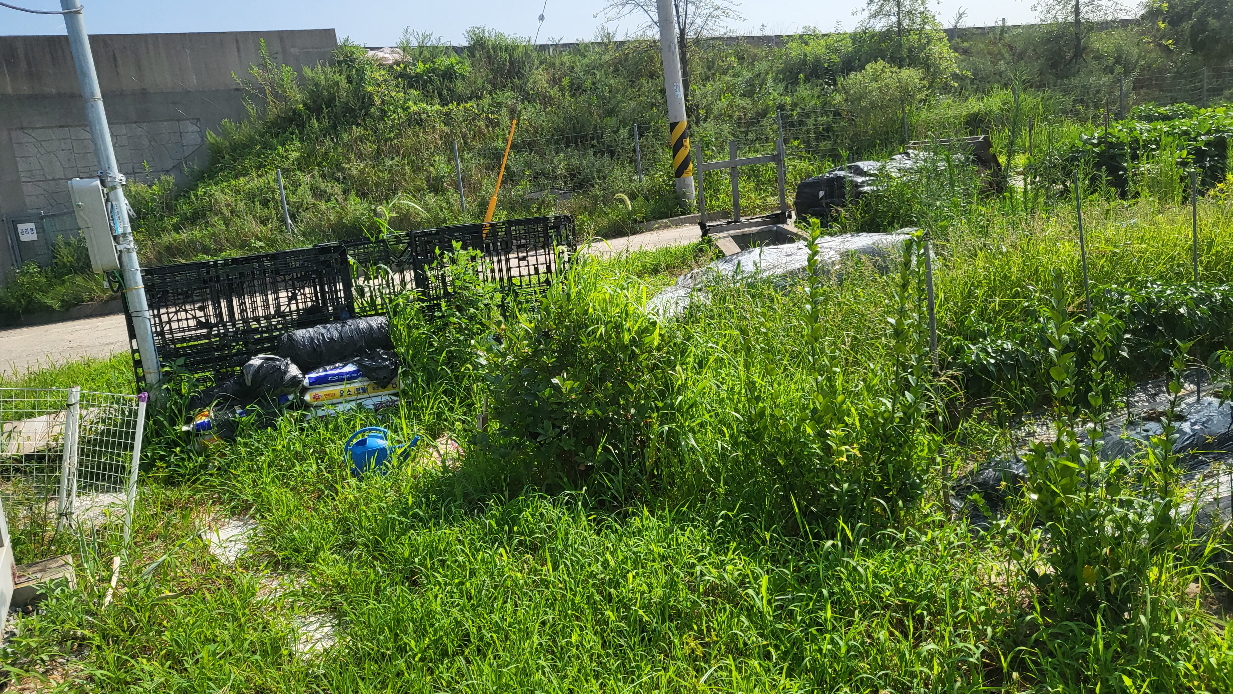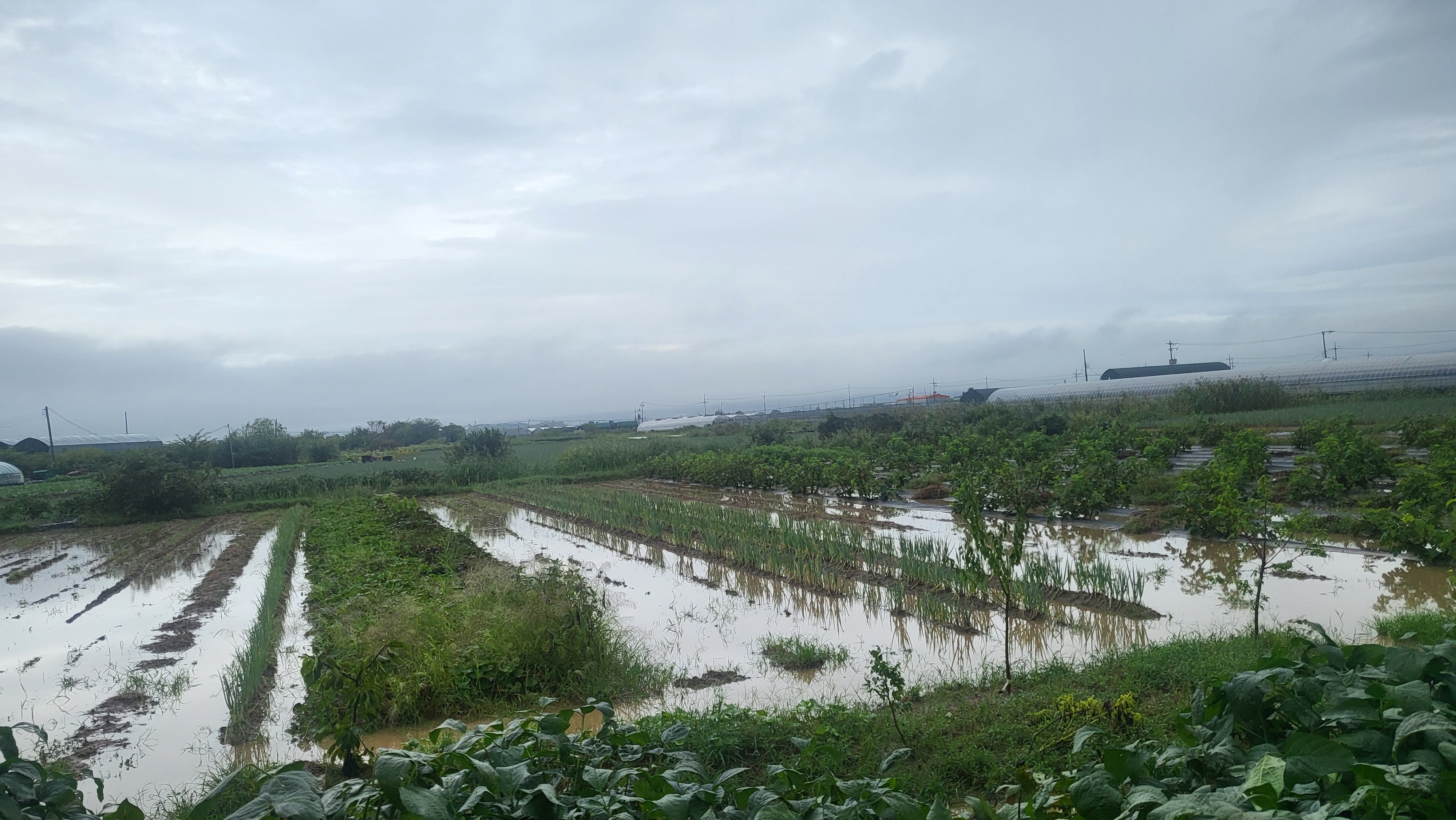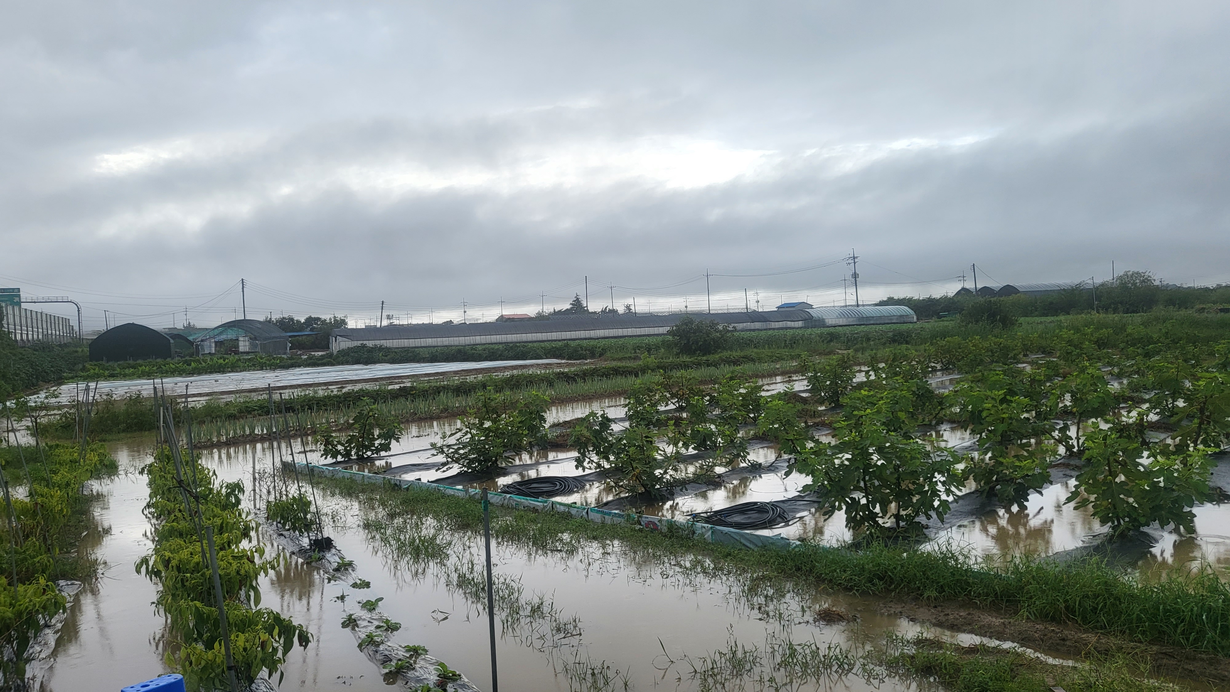 장마로 농장이 풀밭이네요