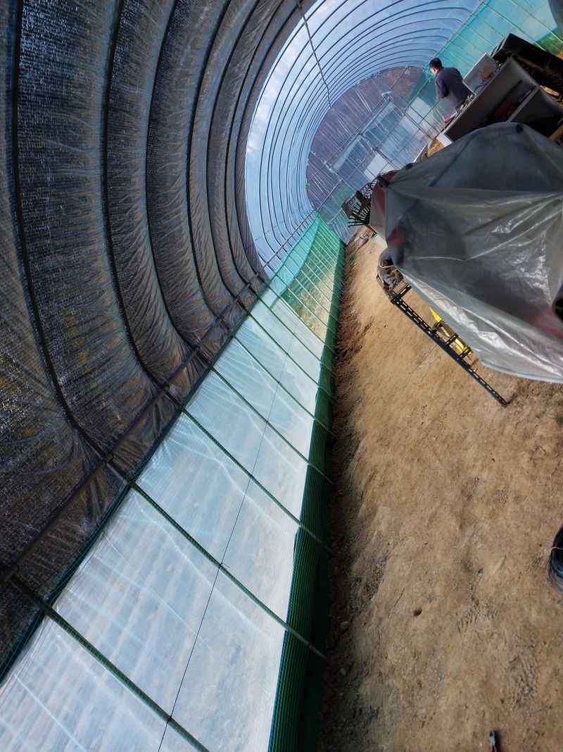 하우스가 낮아서 물건싵고 나르기 힘들어서 이번에 마음먹고 우리부부가 둘이서 다시 높게 만들었는데 이 추운 겨울에 추워서. 덜덜 떨며 언 뭄 녹여가며 보름 동안 만들었답니다 조그만한 창고도 만들었네요