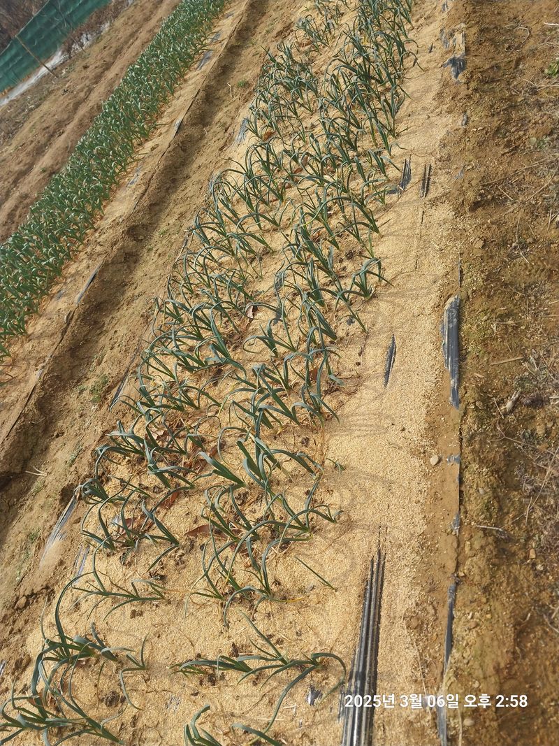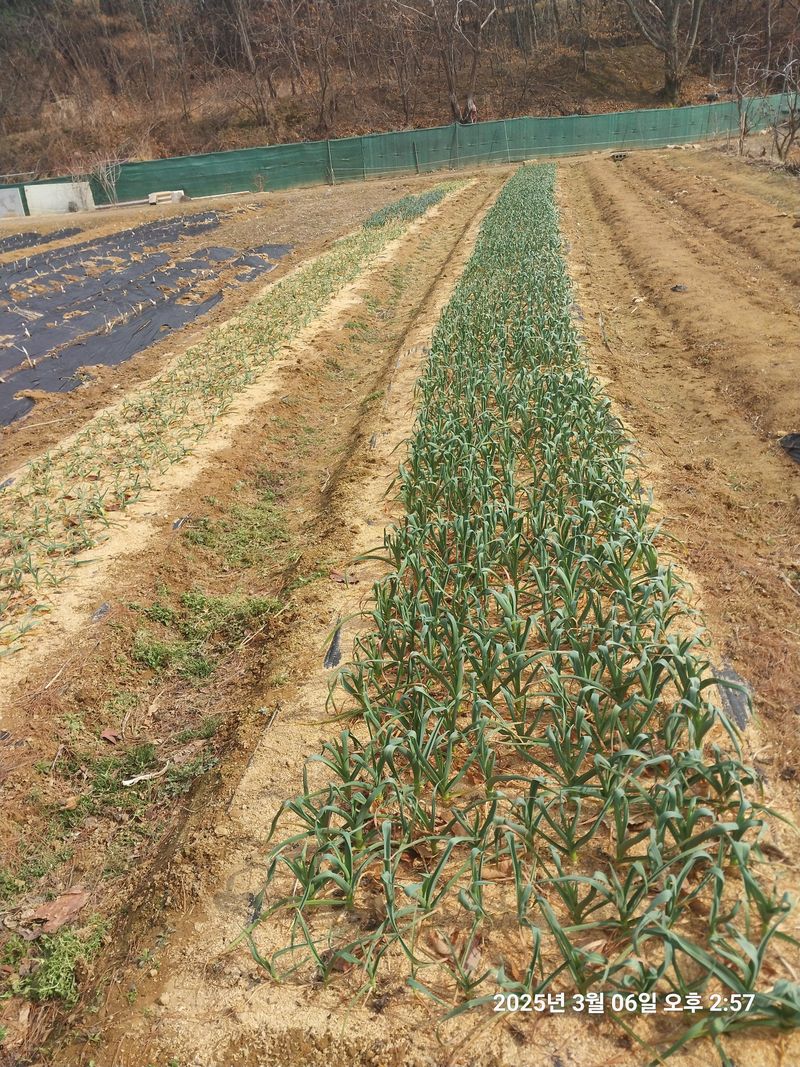 마늘 부직포 벗기고 1차 시비 했답니다 드릅니무도 뽑아서 담밖에 옮겨심고 나무에 황약도 치고 시금치 띁고 냉이도캐고 돌아왔네요