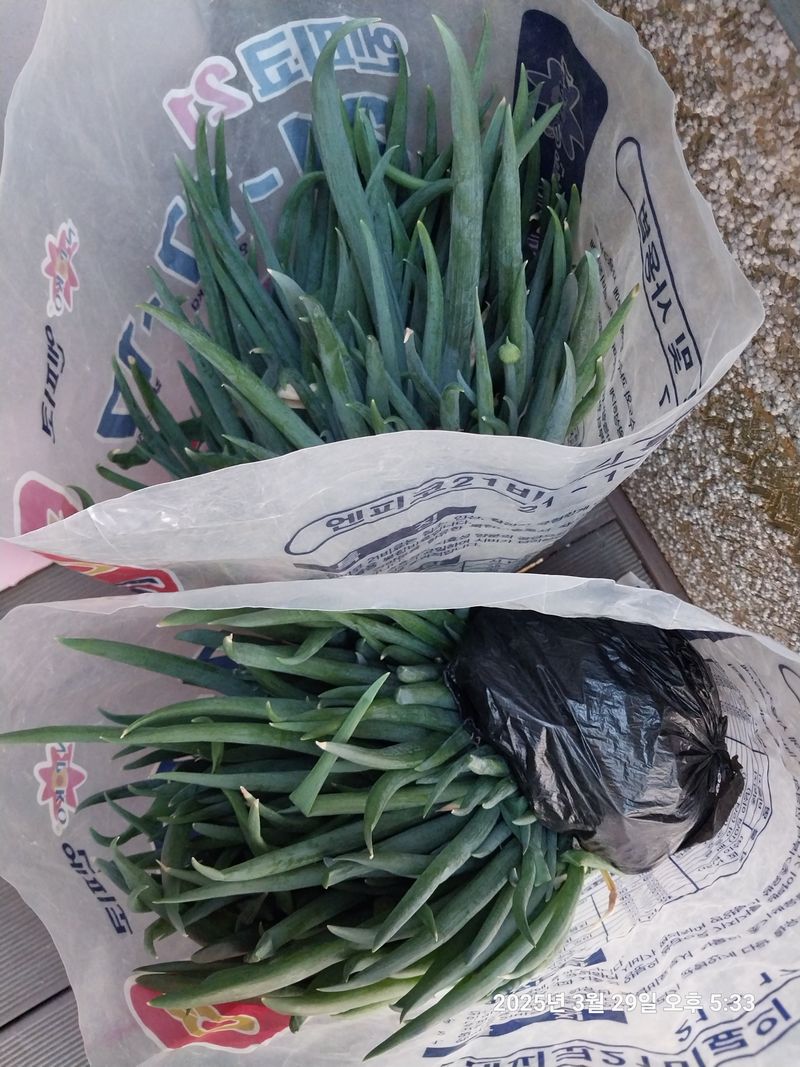 아침부터 밭가에 아카시아가 넘어와서 좀 잘라내고 정리하고 토란 조금심고 시금치 다듬고 대파가 벌써 꽃대가 올라오려고 해서 갈라줄려고 다듬고 파씨 파종하고 돌아 왔네요 내일은 대파하고 시금치 배달하러 가야겠습니다