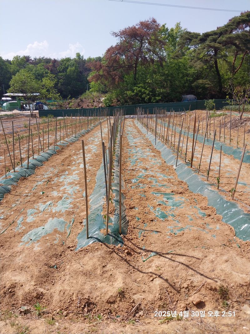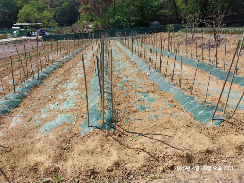 2틀동안 경운기 작업해서 고추 밭준비하고 관리기로 골 만들고 멍칠해서 고추 200포기 정식 하루걸리고 어제는 말뚝까지 작업 끝냈습니다