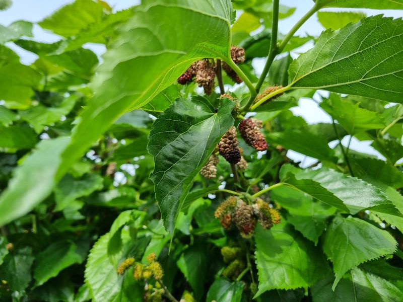 균핵병으로 오디나무 자르기작업후 개량오디와 멀리 식재된 슈퍼오디는 수확가능