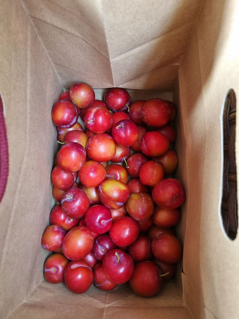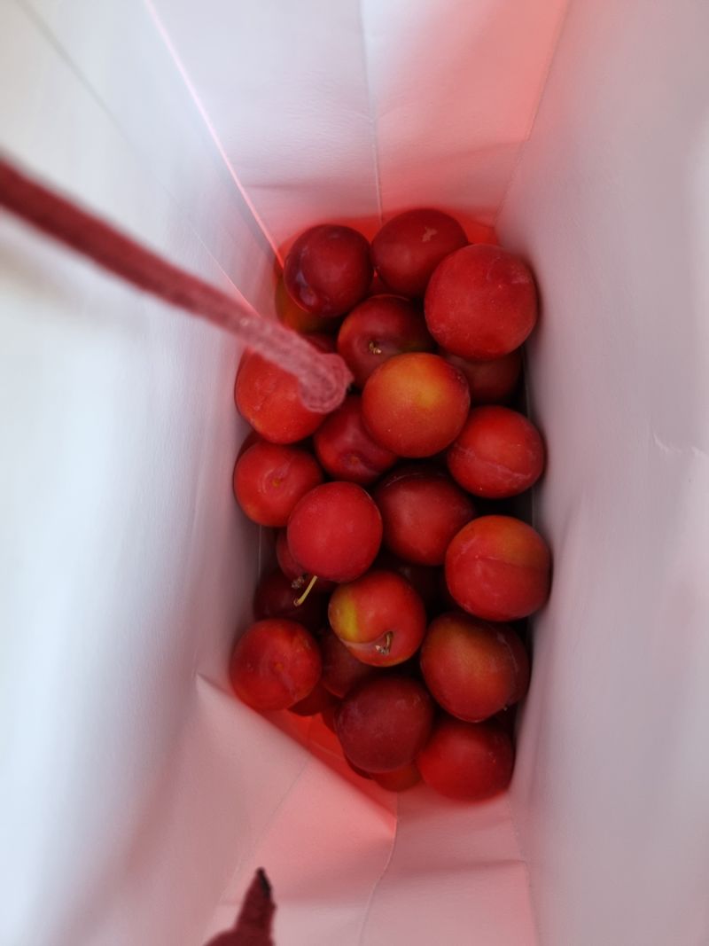 한입 자두나무2에서 마지막 수확. 체리자두도 색깔 진해지기 시작!