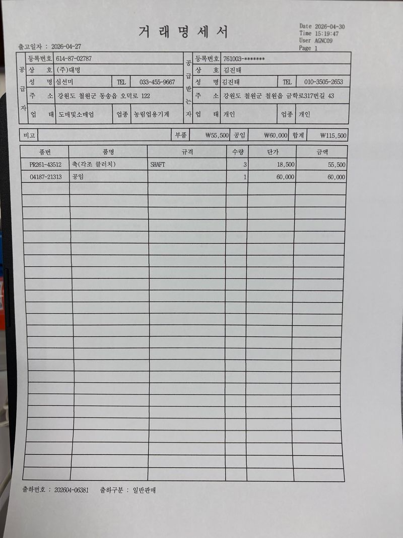 오전에 새마을금고 가서 계약재배 신청하고, 하우스앞에 있는 비료 뿌리고, 하늘밥상에서 점심먹고, 트랙터 쟁기달아서, 창고앞부터 하우스까지 쟁기질 함