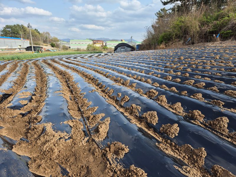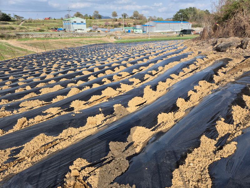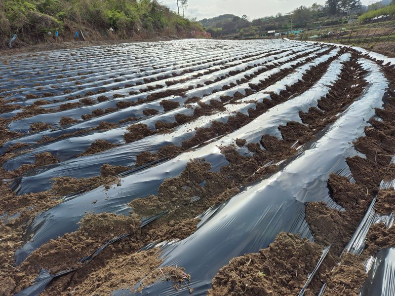 그동안 비가 내리지않아 고구마밭 비니루를 멀칭하지 못해서 걱정이 되었는데 어제 밤새 내린비로 비니루 멀칭 작업을 완료 하였습니다 이번달 말쯤에 고구마 모종 심을려고 예약 주문해놓고 많이 걱정이 되었는데 안심이 됩니다 집사람과 둘이서 하루종일 작업 했네요 고구마 대...