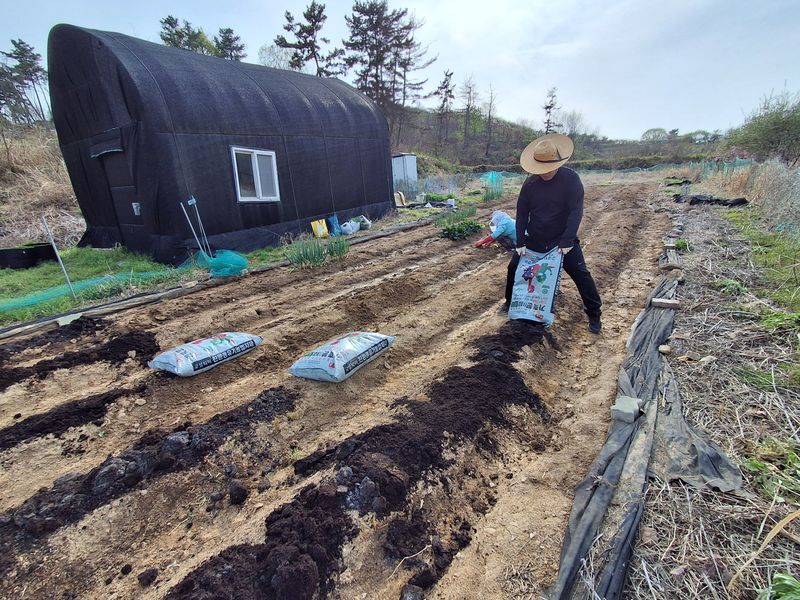 4월 9일 퇴비 살포 작업 하였다