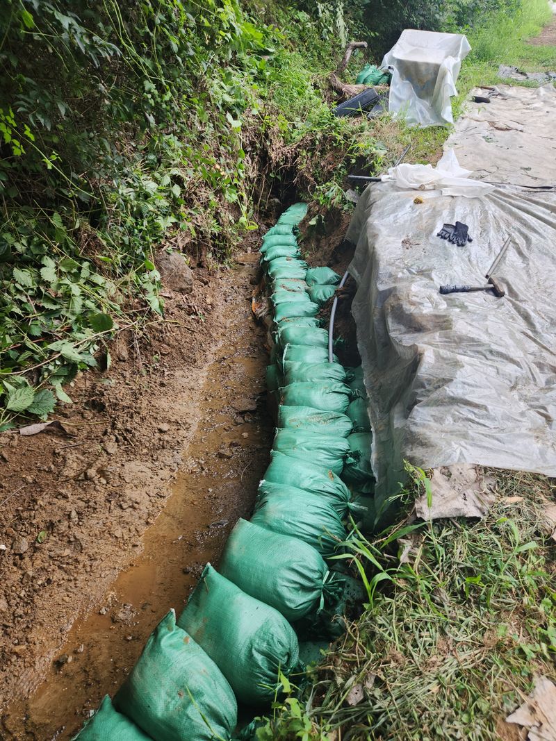 전체 살충제 뿌림2번째 여치가 들깨잎 갉사억음 홍수 로 도랑이 막히고 터짐.