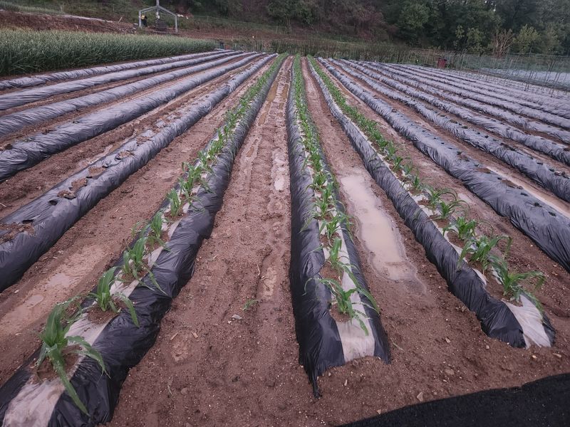 고추모 370포기정도 파종하였습니다 현재 총 고추 🌶 370 포기 땅콩 약 360 포기 옥수수 약 360포기 참깨 약 500 포기 마늘 약 120 평