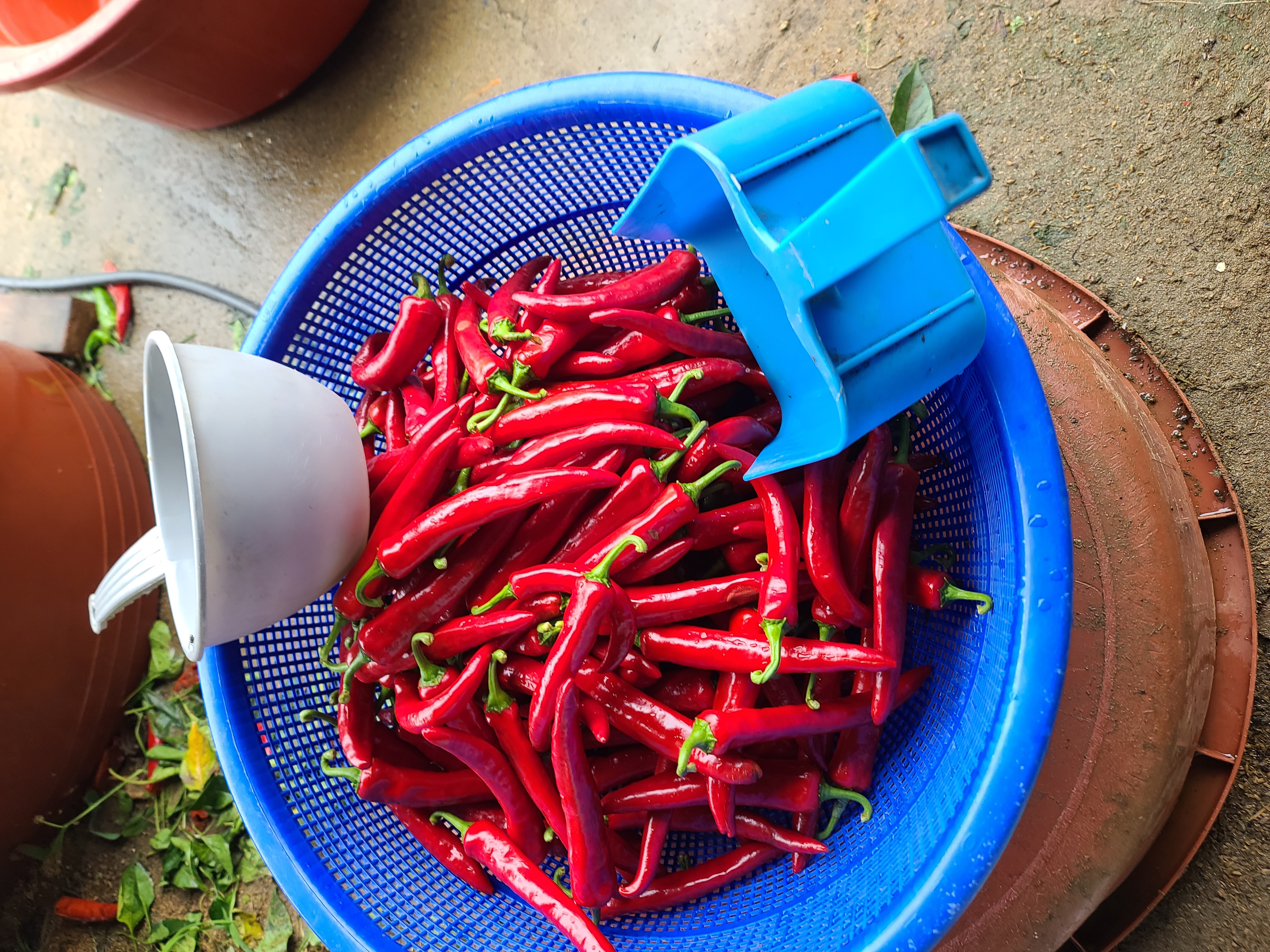 고추를 수확했다