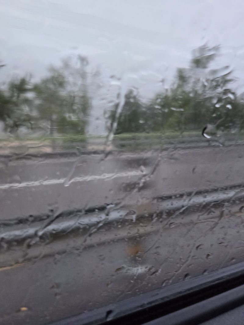 아침까지고추다따고진주병원다녀오는데소나기가쏟아지니길이물바다가되어서경찰차가가로막고있네요