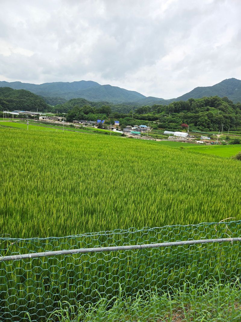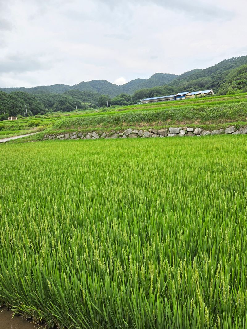 금요일에타작완료햇어요 금년에는비가자주와서논에물이있으니콤바인 움직이기가힘들엇어요