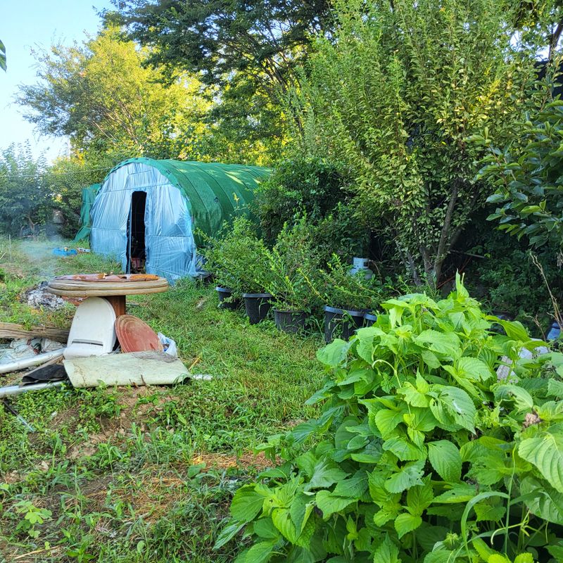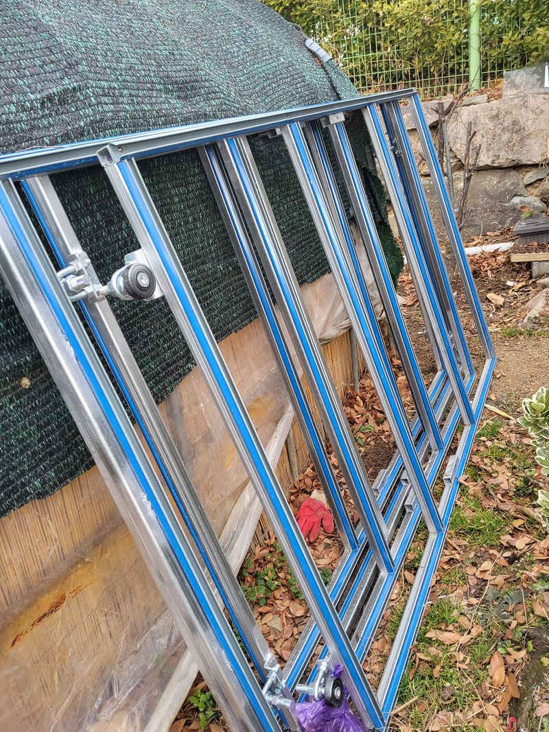 밭옆에 비닐하우스 지으려고 해요 밭형태가 바뀌겠지요 골조랑 문 이랑 다 가져왔어요 맨 마지막에 비닐 쒸우겠지요
