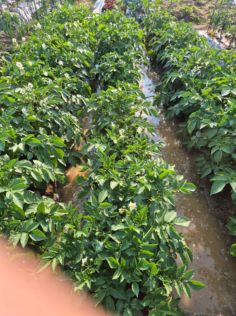 감자에 물주기를했어요 여긴 김천이라 장마가 ,이달 말경온대요 25일까지만 물주고 말려야 되나요 일주일에두번 골어 흠뻑주면될까요 잎이 넘좋아 걱정이 좀됩니다 비대해져지 않을까 하네요