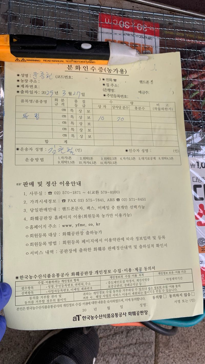 허브뱅크 200개 1200원 납품 만상 400개 1200원 납품 한국화훼직판장팀장 200개 1200납품