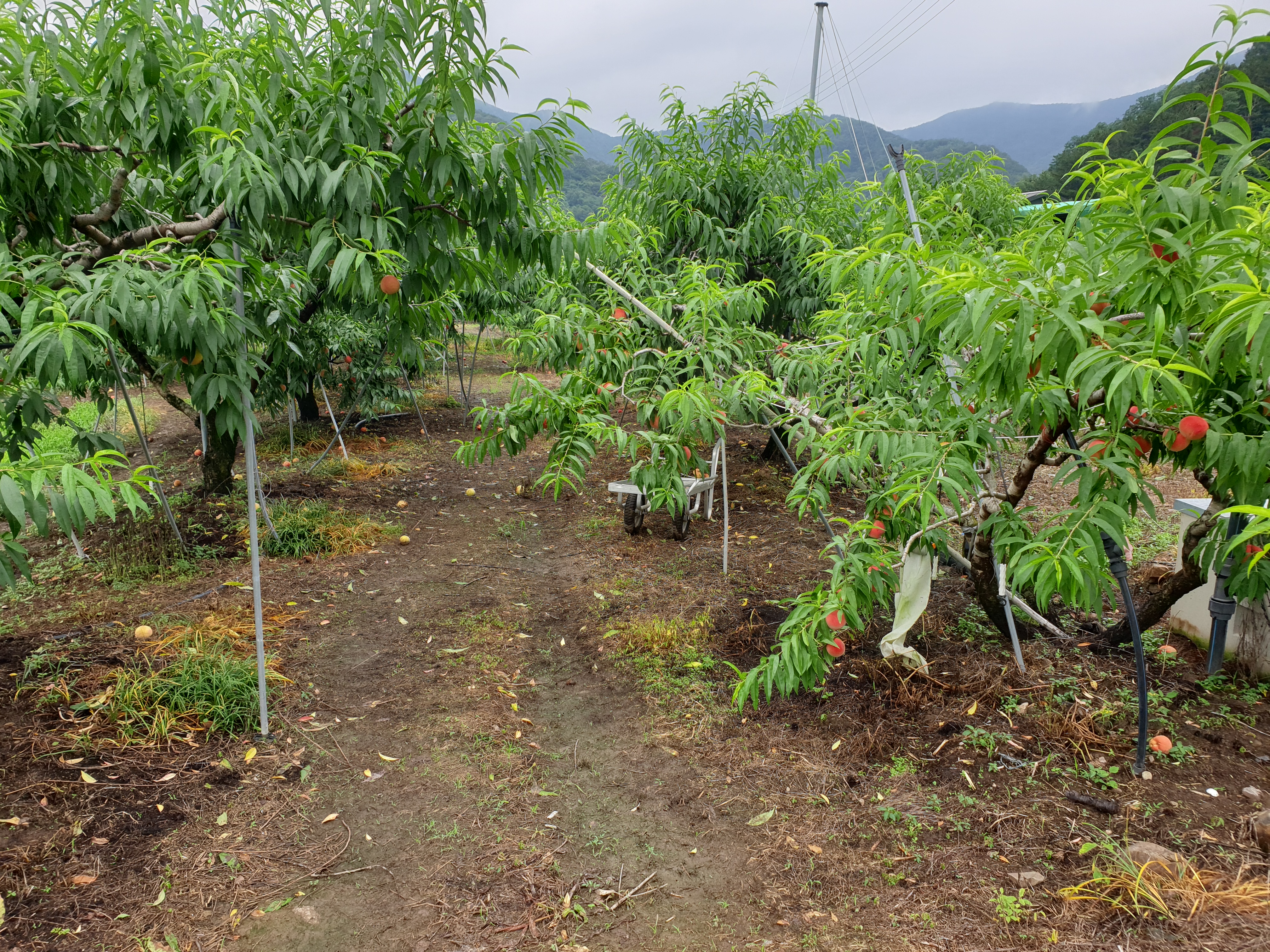 비가 많이와서, 수확기 복숭아 당도저하로 품질 하락, 올 농사가 불투명 합니다. 과수상태 는 양호합니다.