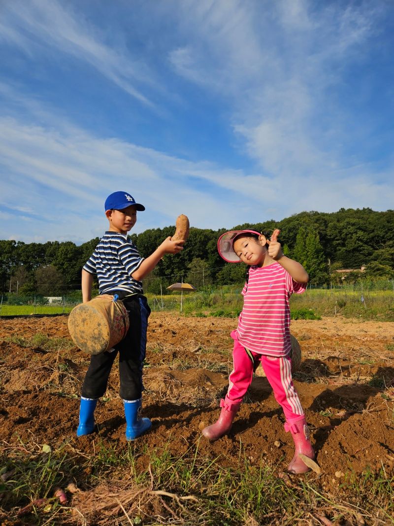 저는 친정 부모님께서 물려주신 땅을 여동생 네랑 둘이서. 자급자족 할 수 있는것을 심고 있답니다 낭군님이랑 제부가 더 좋아하면서 올해는 하우스도 재 리모델링 하면서 즐겁게 농사 짓고 있는 60대할머니 랍니다ᆢ작년에는 고구마로 재미도 좋았답니다