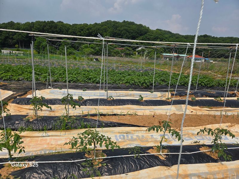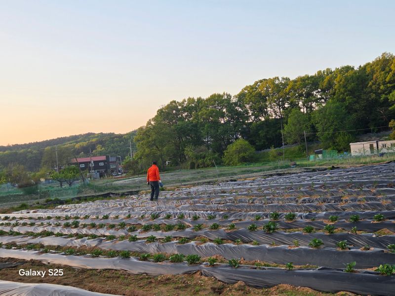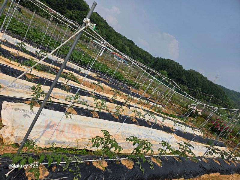 오늘은 고추ㆍ가지ㆍ비료 주고 대추나무에 남편이랑 제부랑 약 주고 제초제도 뿌리고 동생이랑 취나물밭에는 풀 뽑고 딸기 순도 주고 해도해도 끝이 없는 밭일들 ~~~