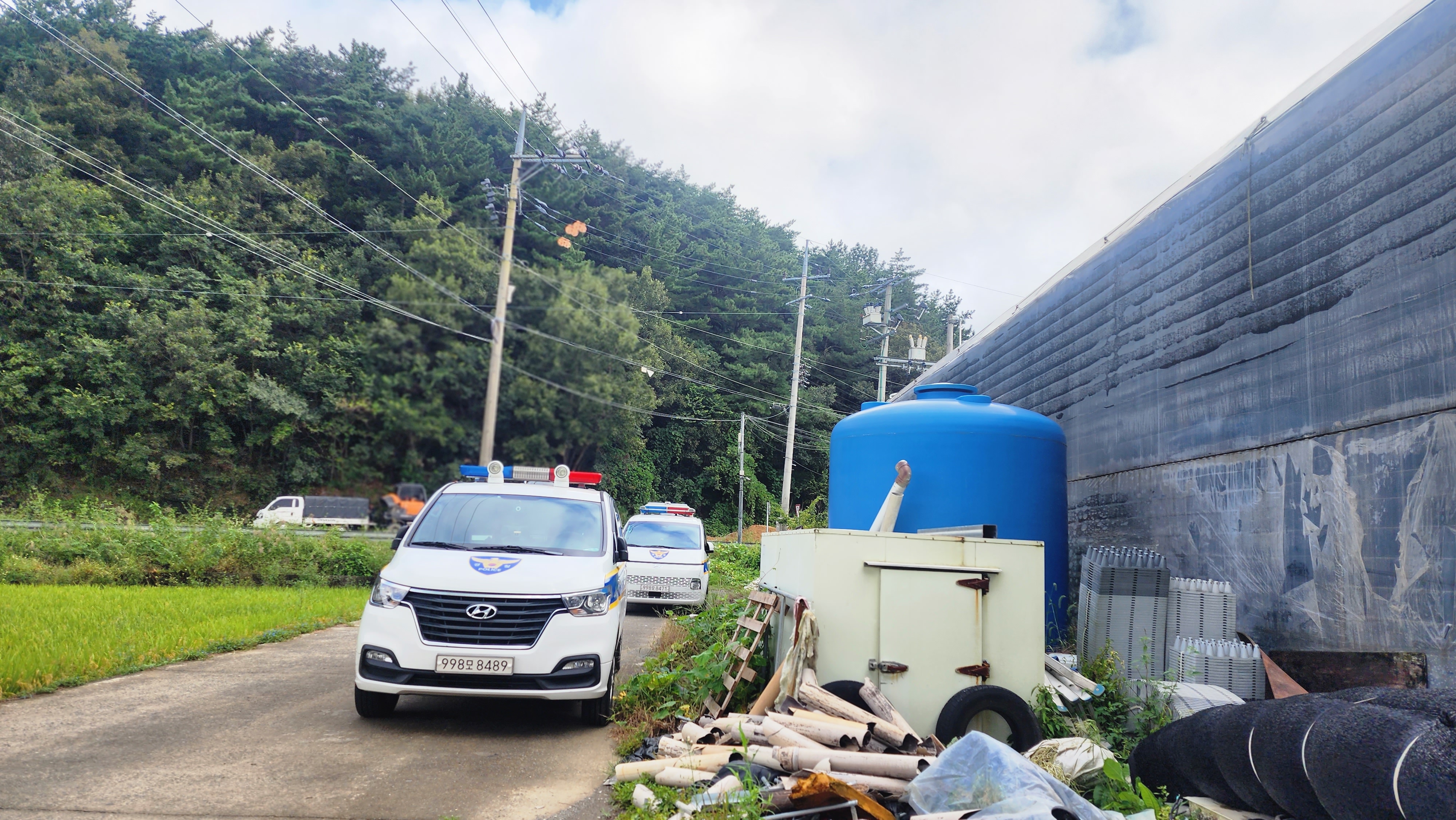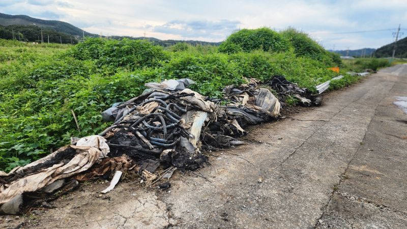 1,9월17일 저녁 7시30분경 하우스 남쪽부분 화재 2,9월18일 조사 경찰과 과학수사대 소방서 조사 보험회사 실사 위로차 방문객 확인전화