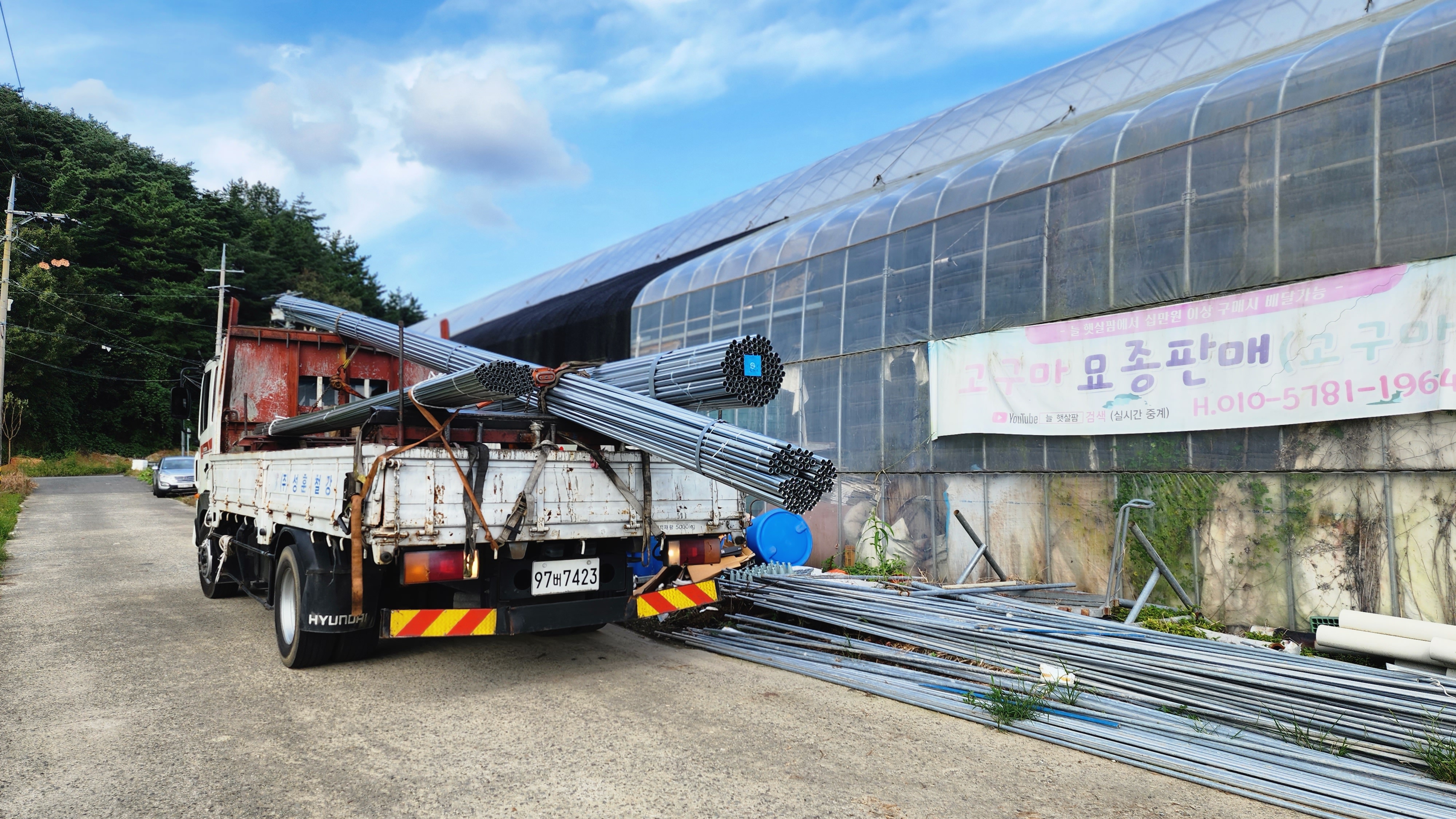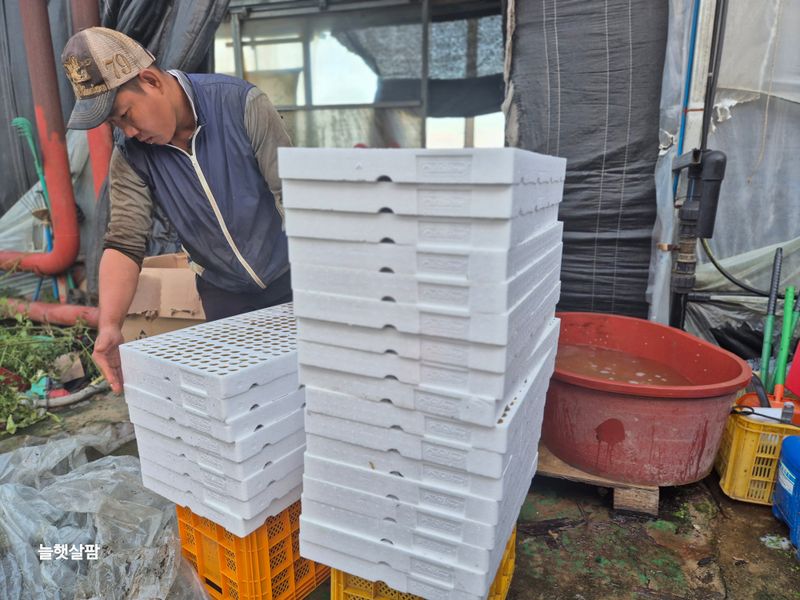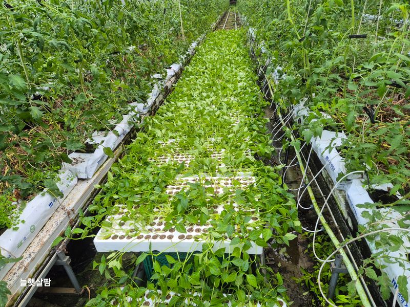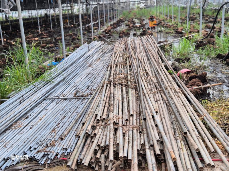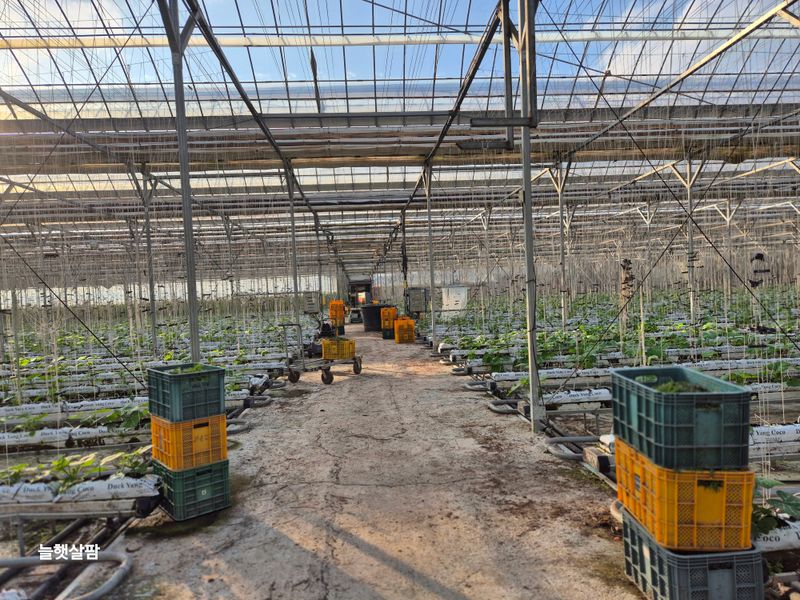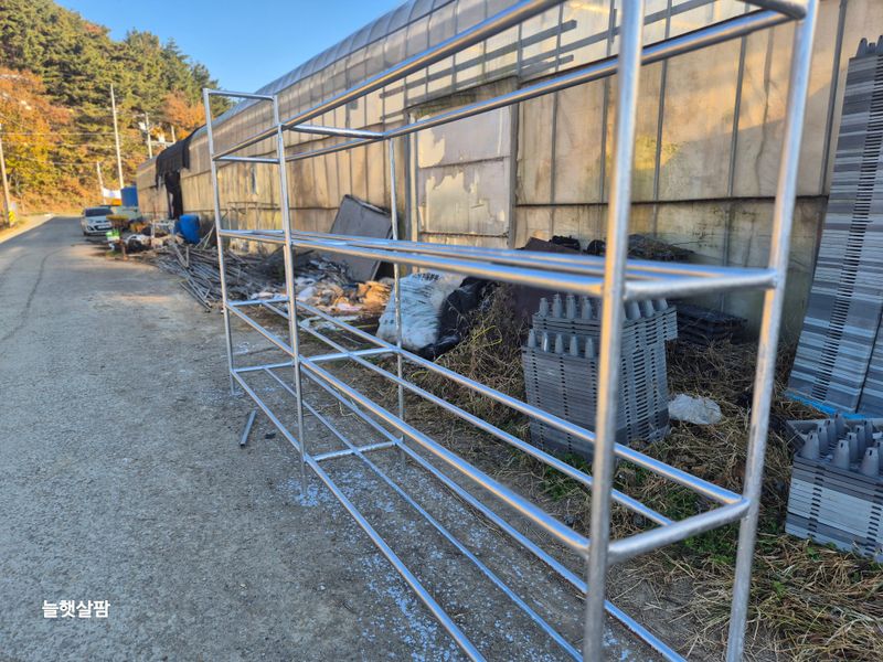 맑음 피망 새싹 저장고에서 밖으로 저면관수 진주식 하우스 트렉트 작업 논 갈기 개천 하우스 철거 작업
