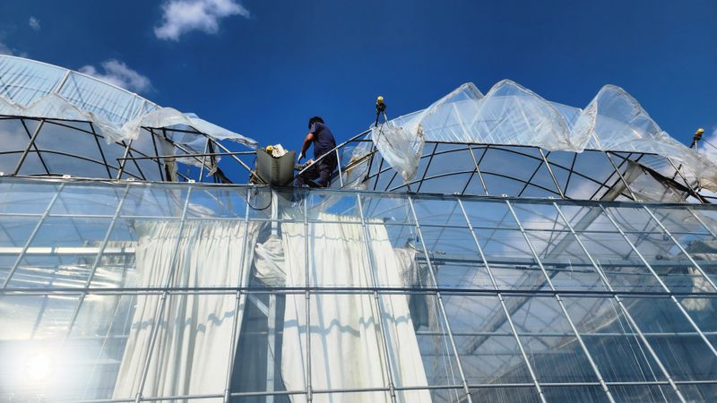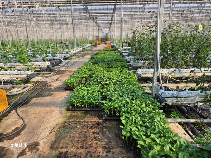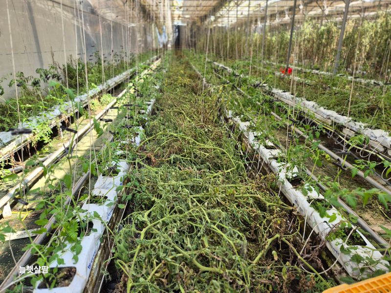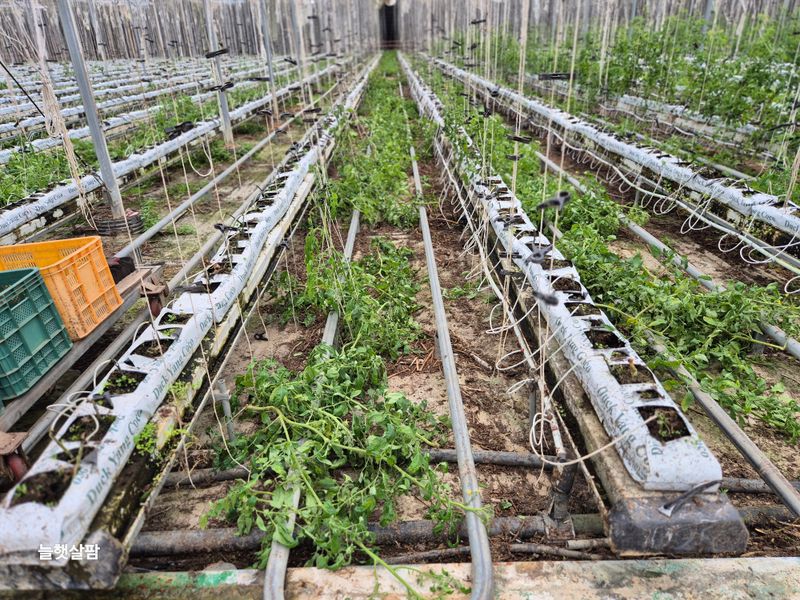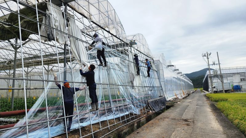 태풍 카눈이 남부지방 강한 바람과 비로 북상 예상 파프리카 모종 저장고로 들어 감