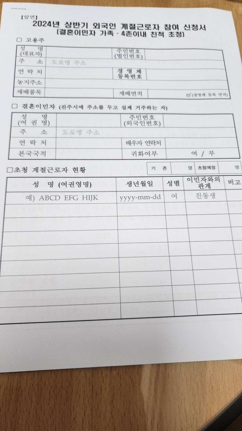 1,파프리카 유인 2,태국 여자 1명 왔음 3,계절근로자 필리핀 2명 신청(주소지면사무소)