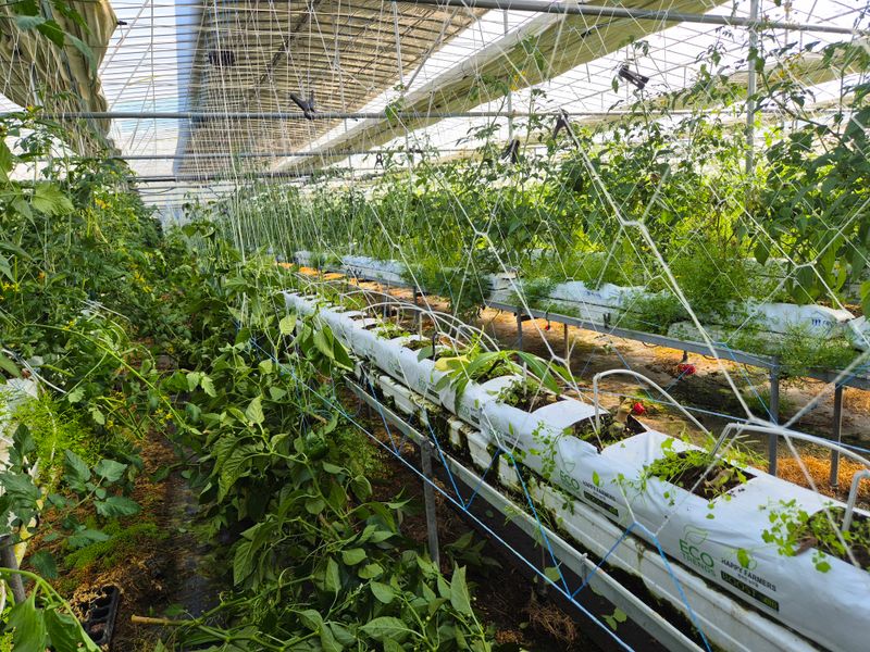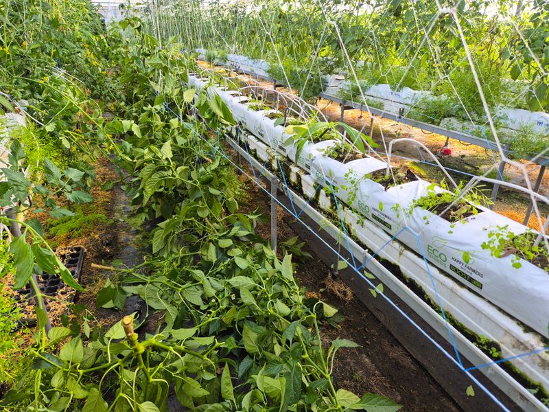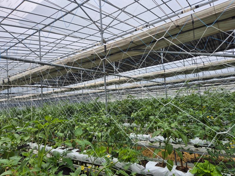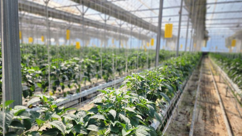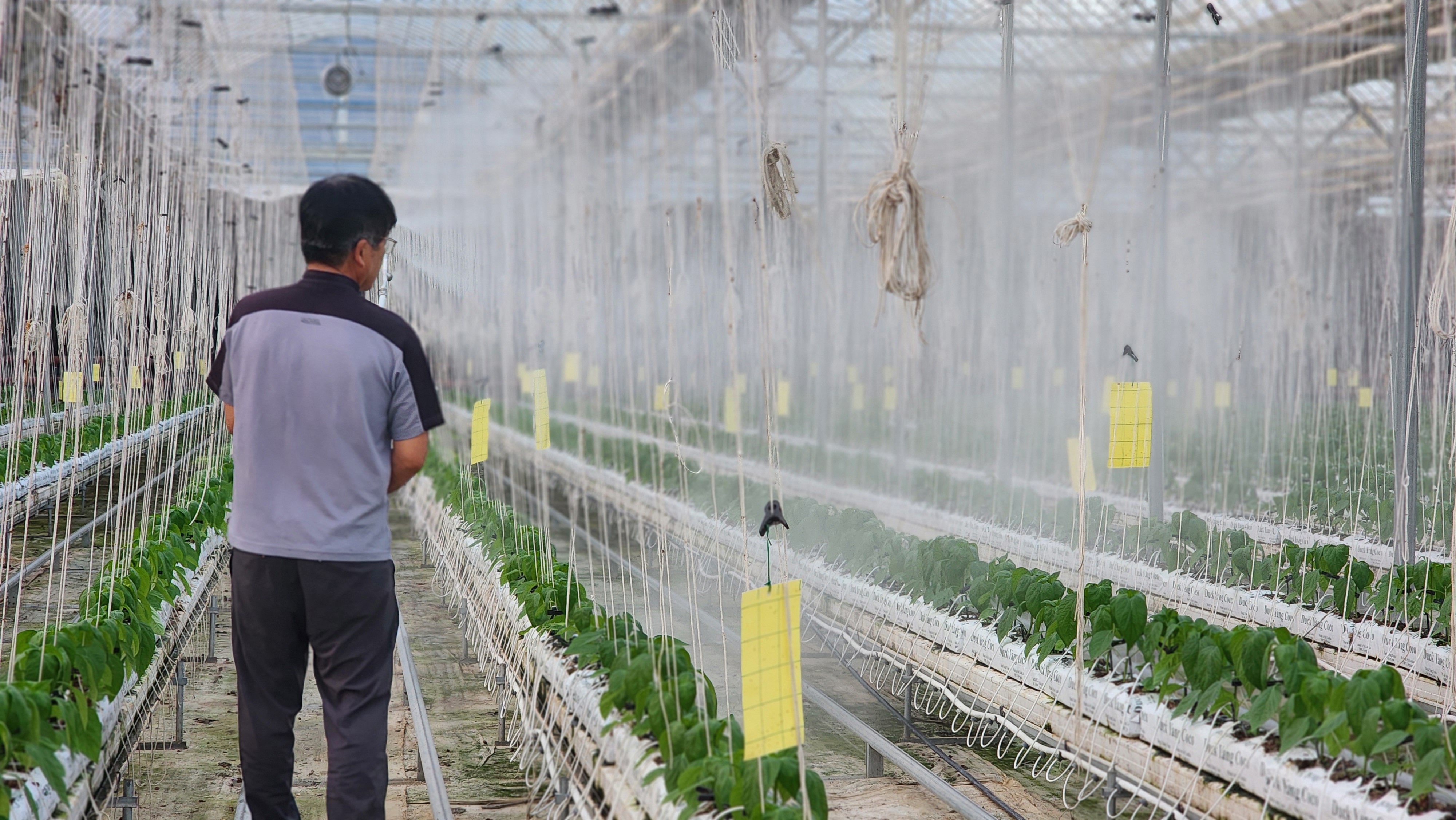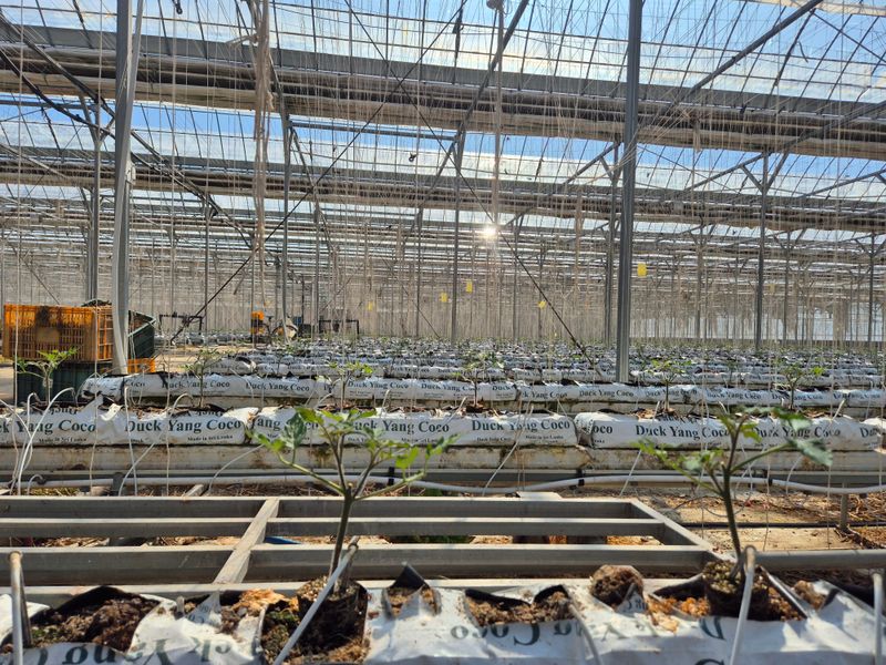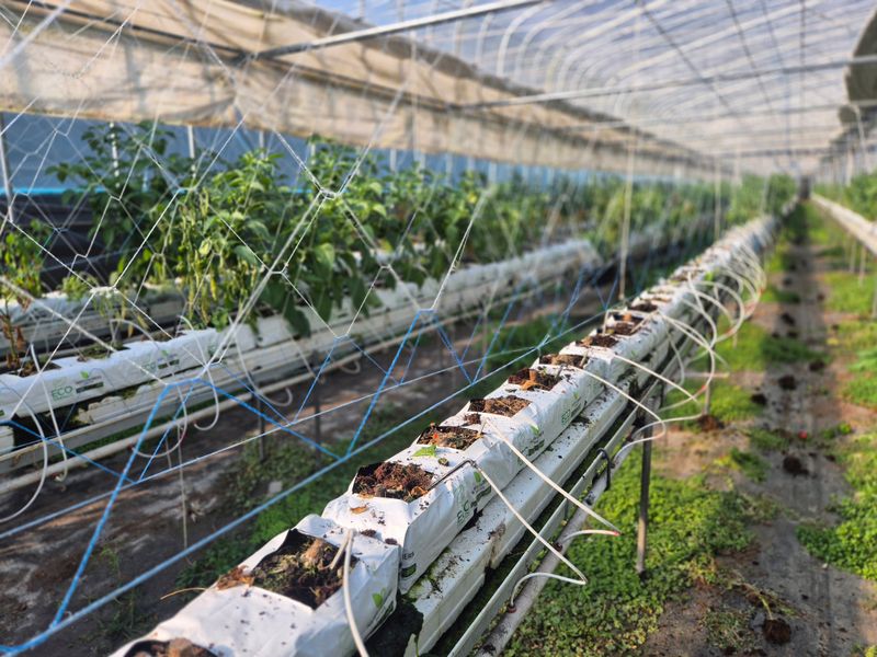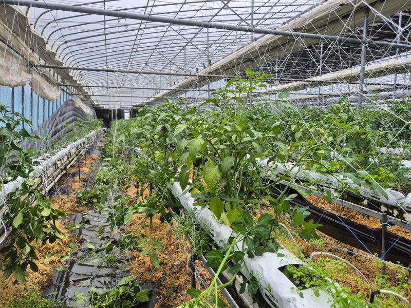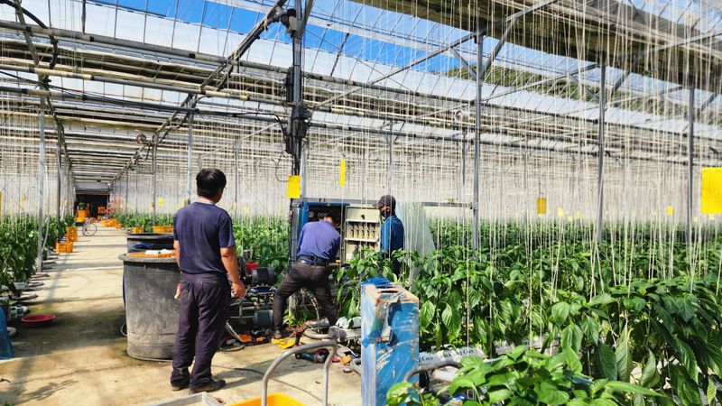 1,빨강 파프리카 밖으로 나옴 고르지 못함 2,저면관수 ~양액으로 3,햇빛차단 스크린으로 4,유동팬 이용 온도 순환