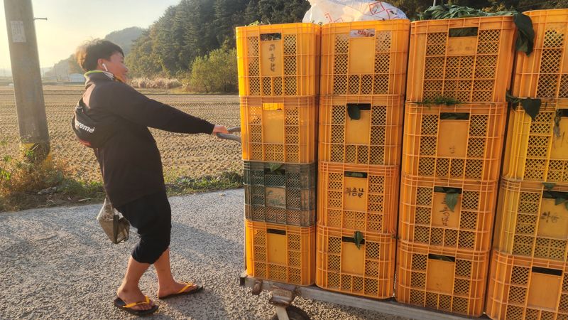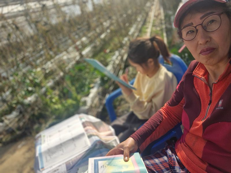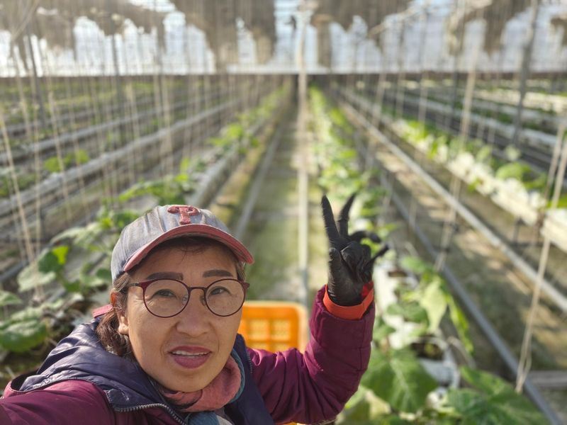 집게 옮겨 가기 하고 있다 3200평 농장 혼자 작업 중 진주는 비가 내린다 일을 하기 좋지만 하우스 안에 떨어지는 빗물은 농부의 마음 무겁게 한다 날씨의 변화처럼 온도의 편차처럼 농부의 행복지수도 변한다 노력하는 60살의 여자 농부 늘햇살팜