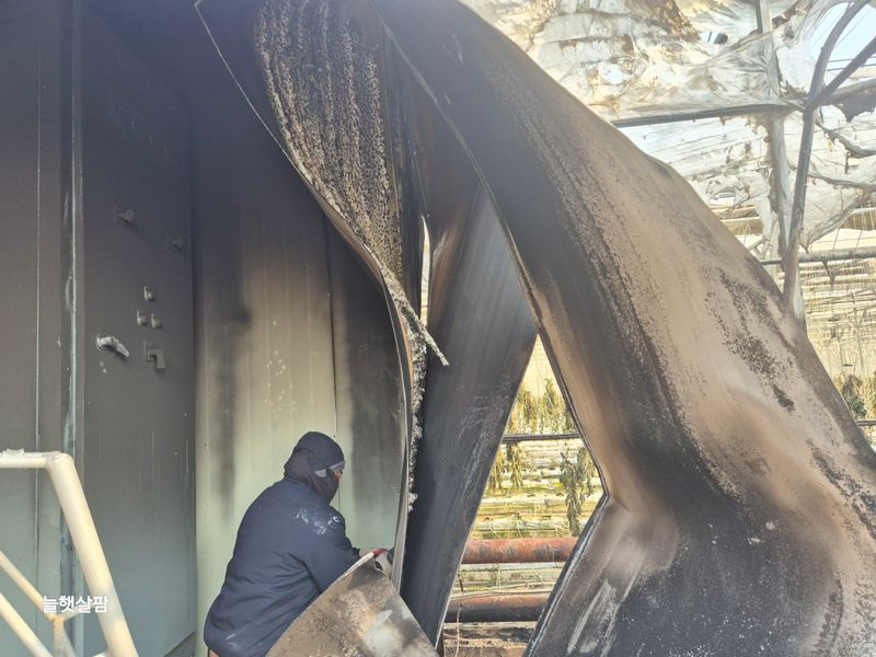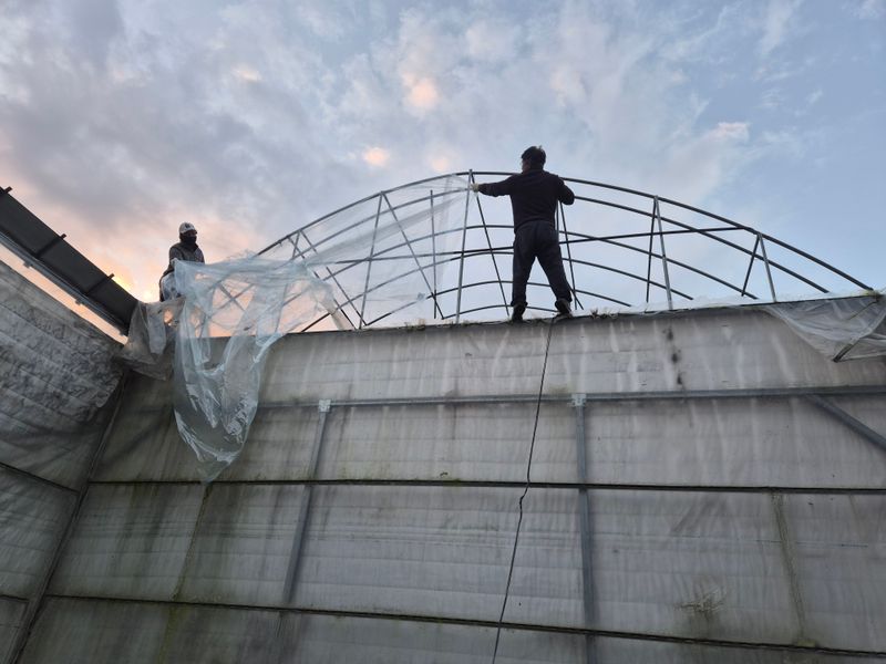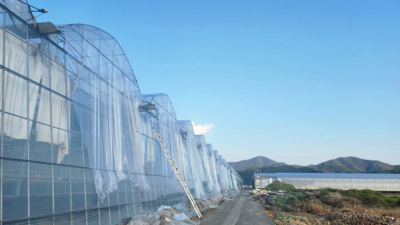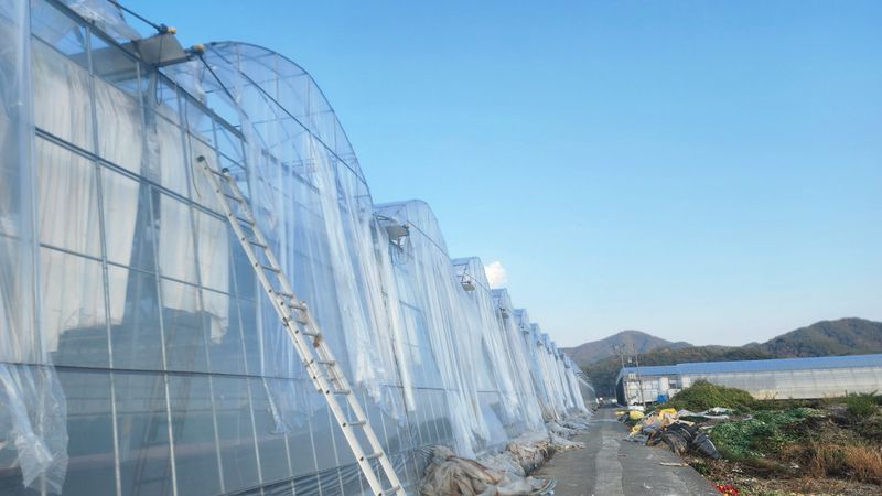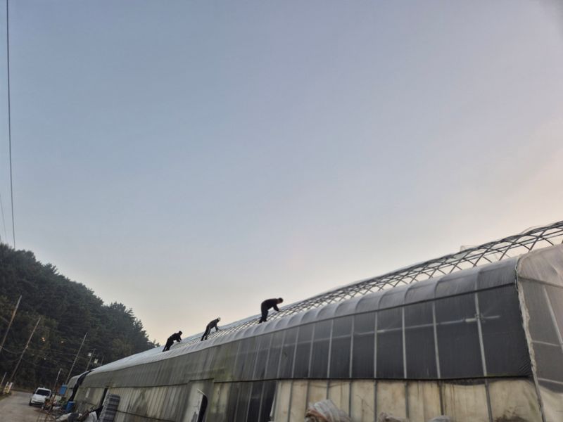 강풍으로 비닐 터짐 하우스 보험 사고 접수 스크린도 찢겨짐 바람은 계속 불고 날씨는 차갑다 어쩌면 좋을꼬