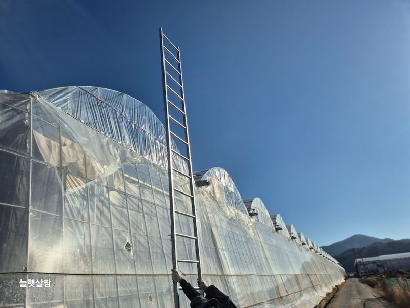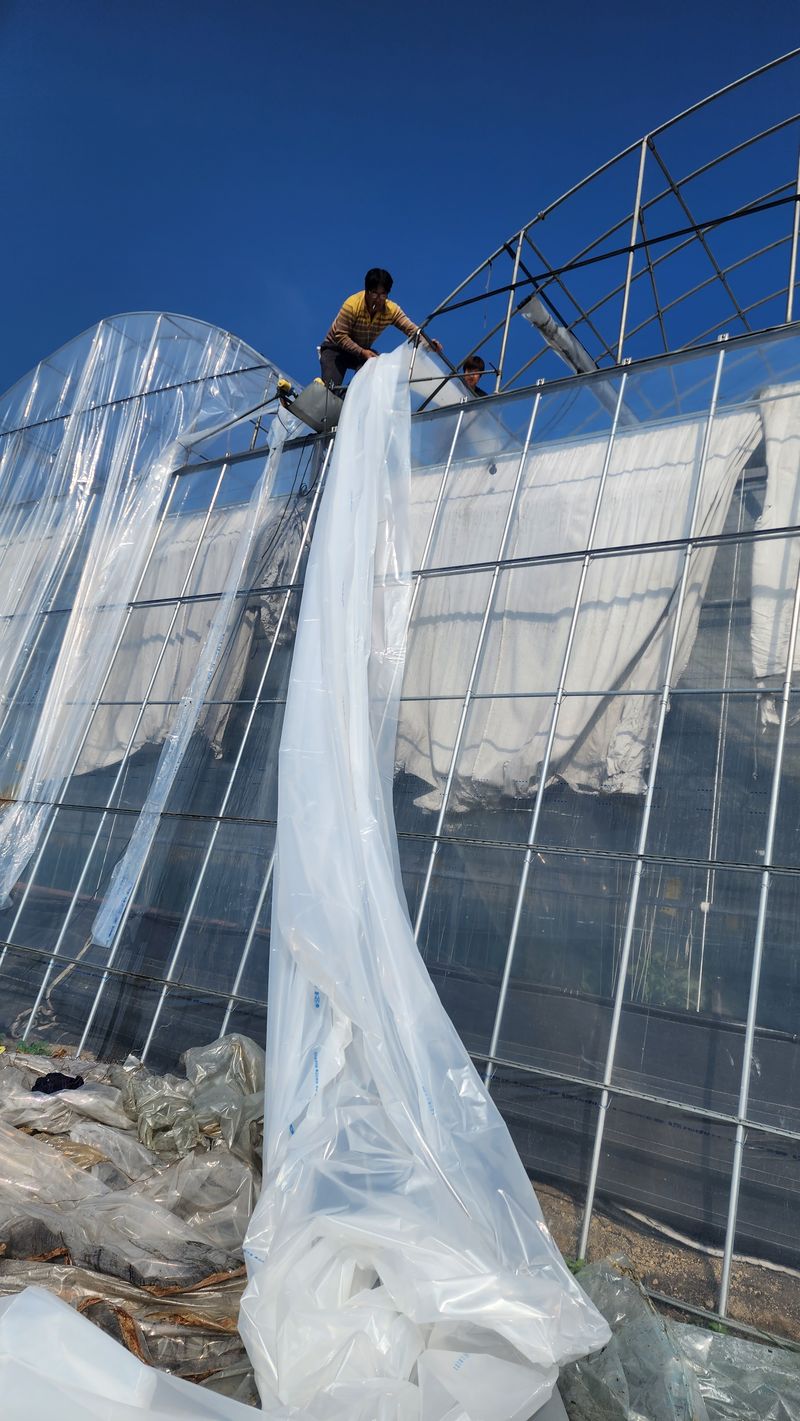 맑음 북쪽 벽면 비닐 교체작업 오래토록 걱정 하다 더디어 오늘 새비닐 교체 했다 하나씩 손보고 보완 된다 감사합니다