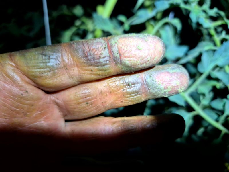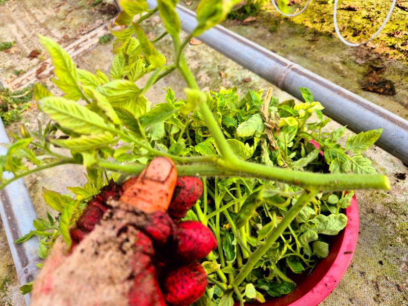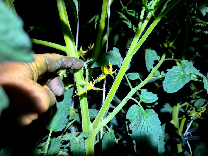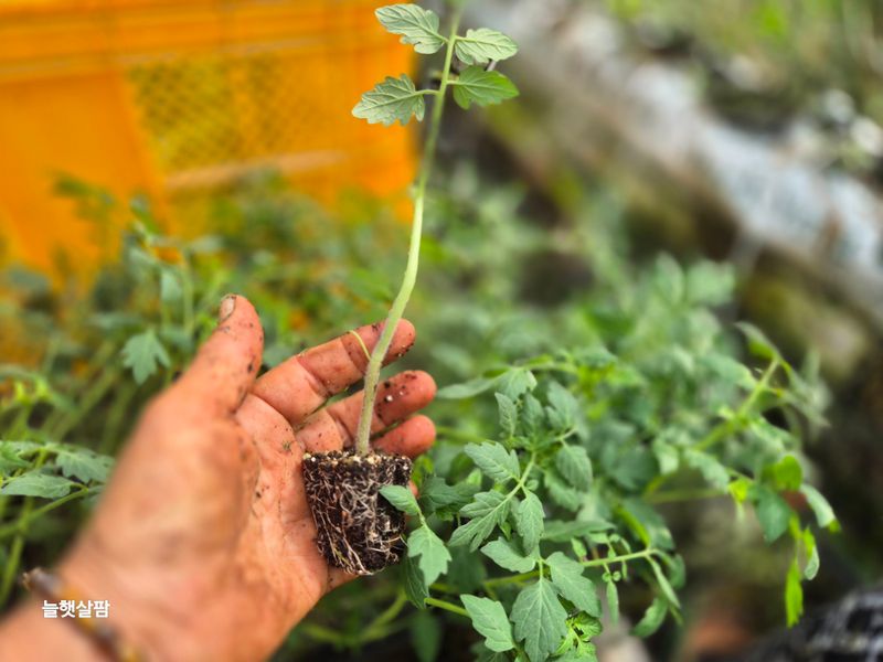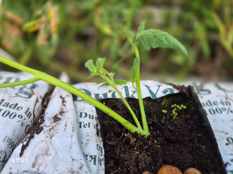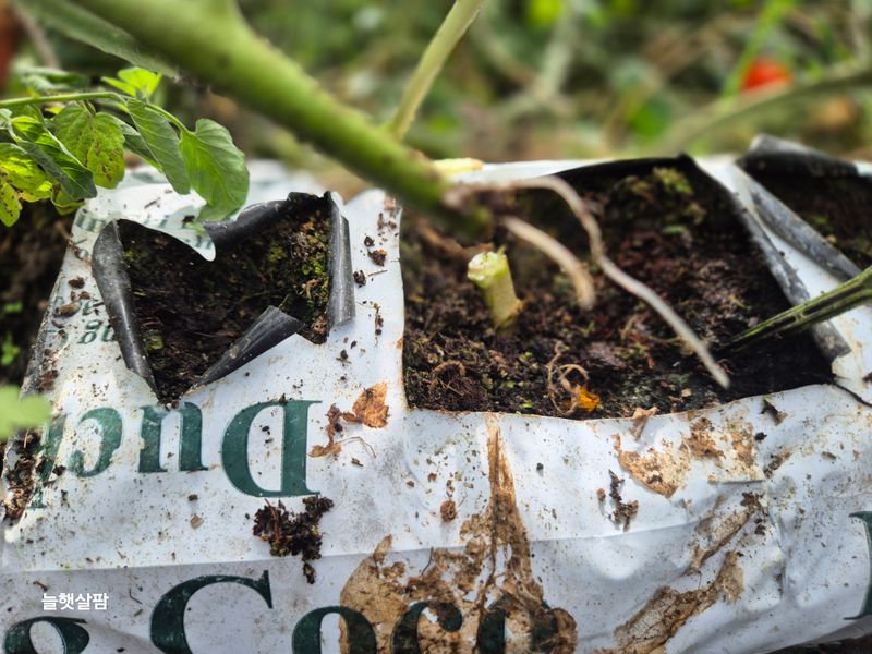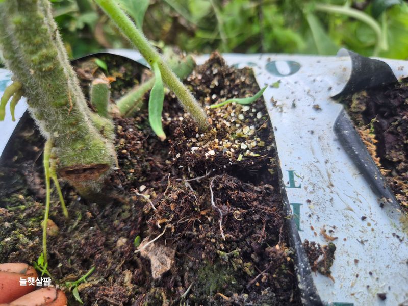 맑음 토마토 나무 자르고 부분 삽목을 한다 삽목한 토마토 집게 잡아야 한다 기존 토마토 곁가지 잘라야 한다 염소 사료 챙기고 저장고 피망 새싹 확인 하고 물뿌려 준다