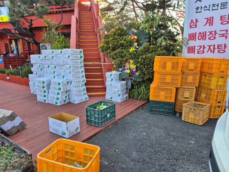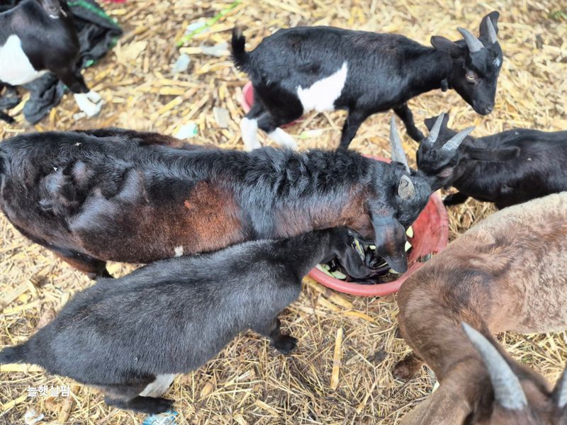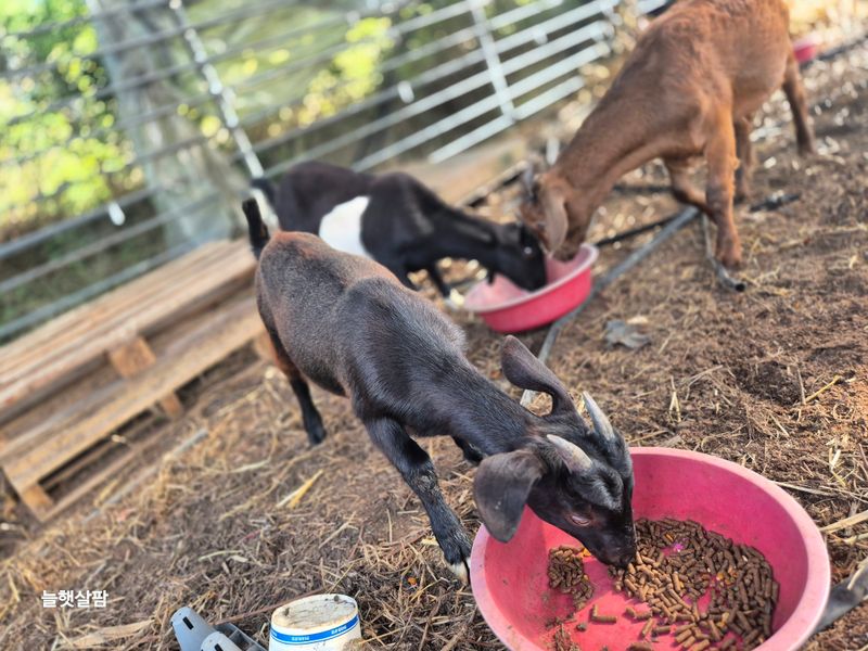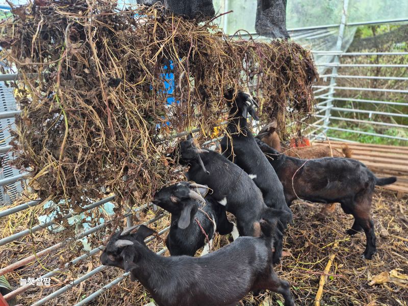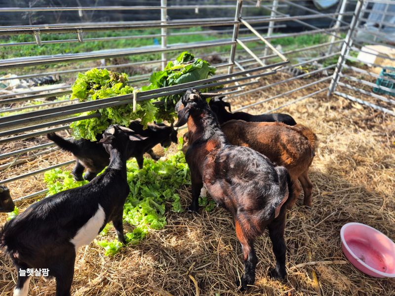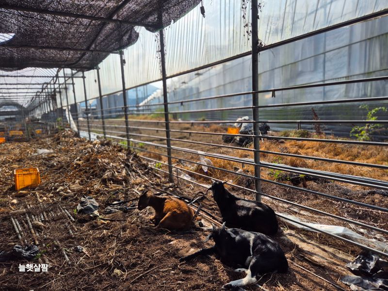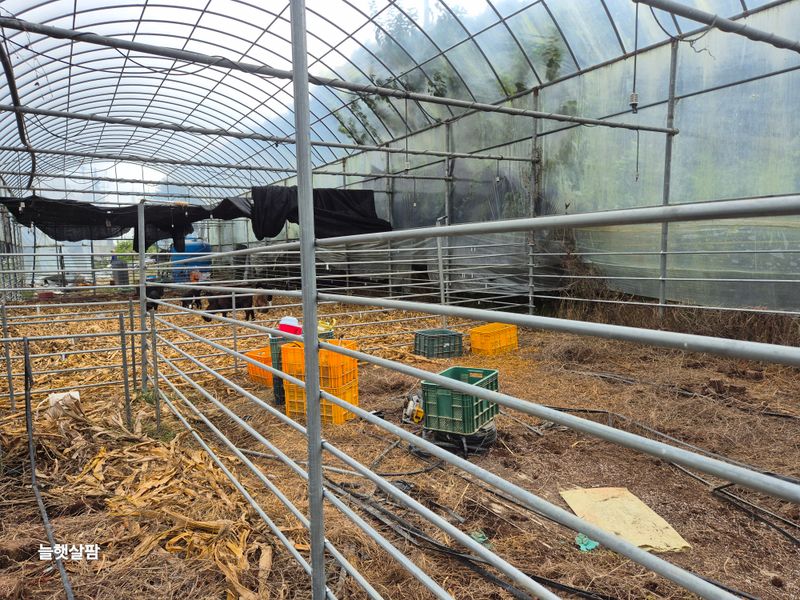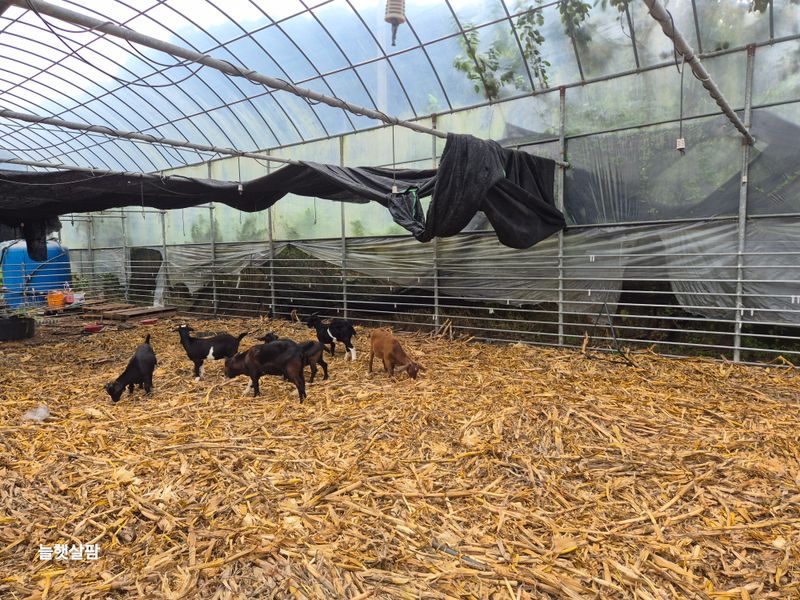 하우스 철거 트렉트작업 염소 사료 물 충제 챙겨주기 진주농업기술센터AI교육 피망 새싹 저면관수