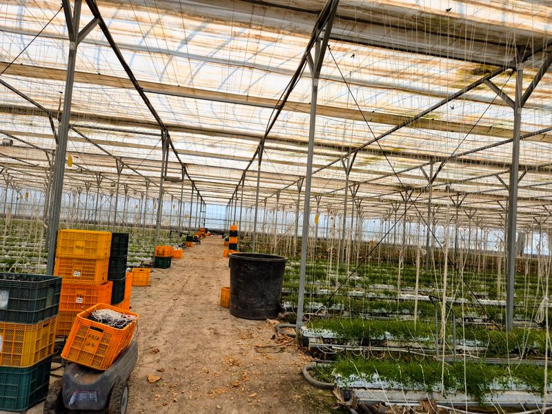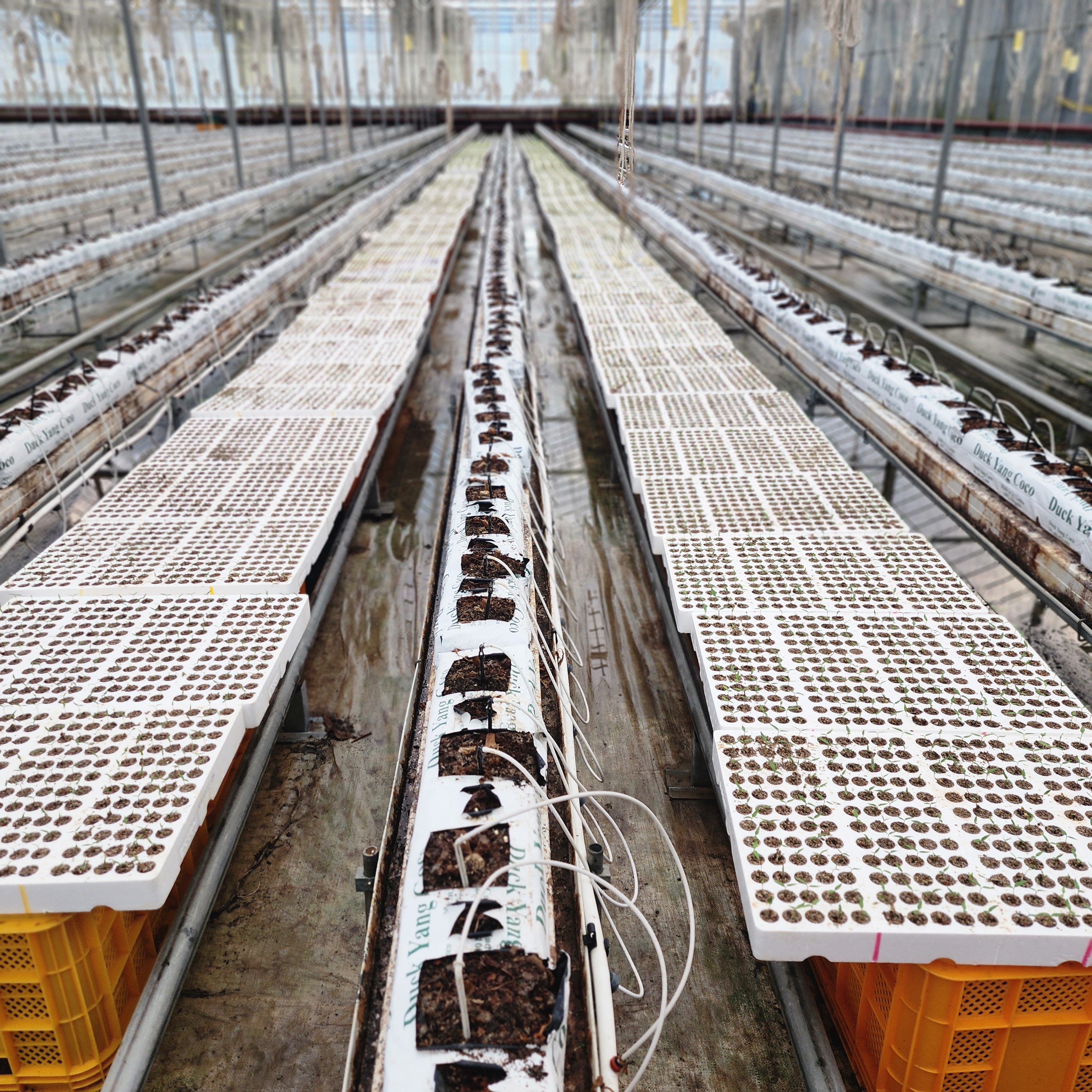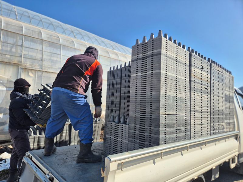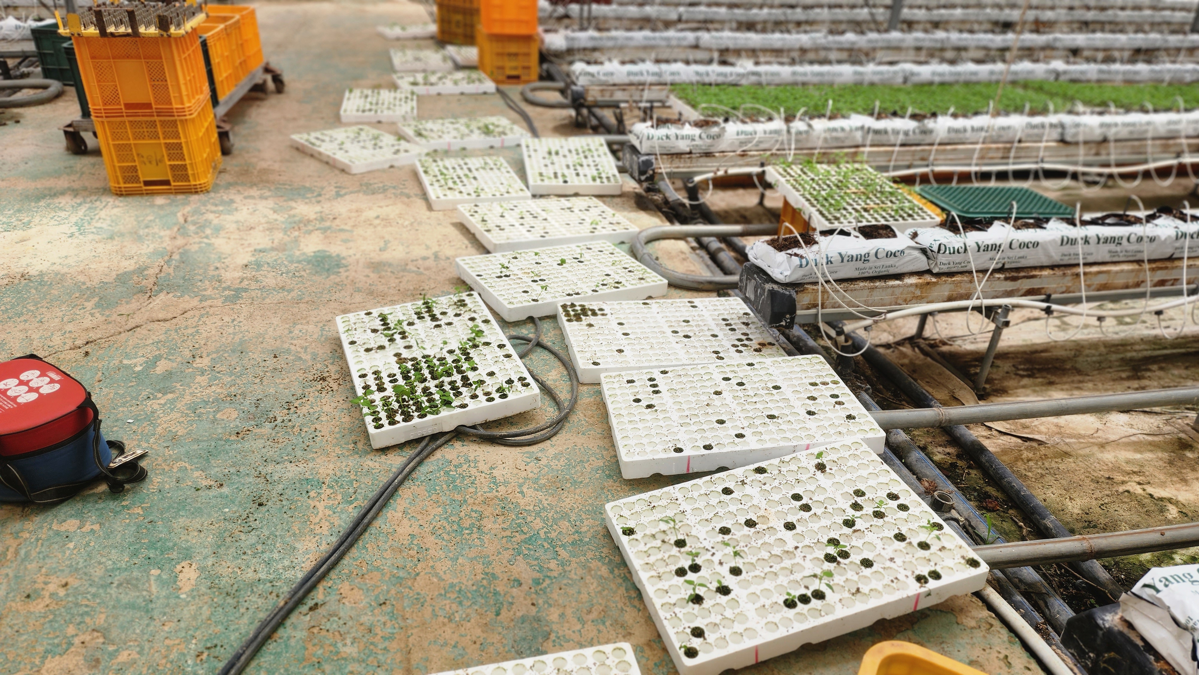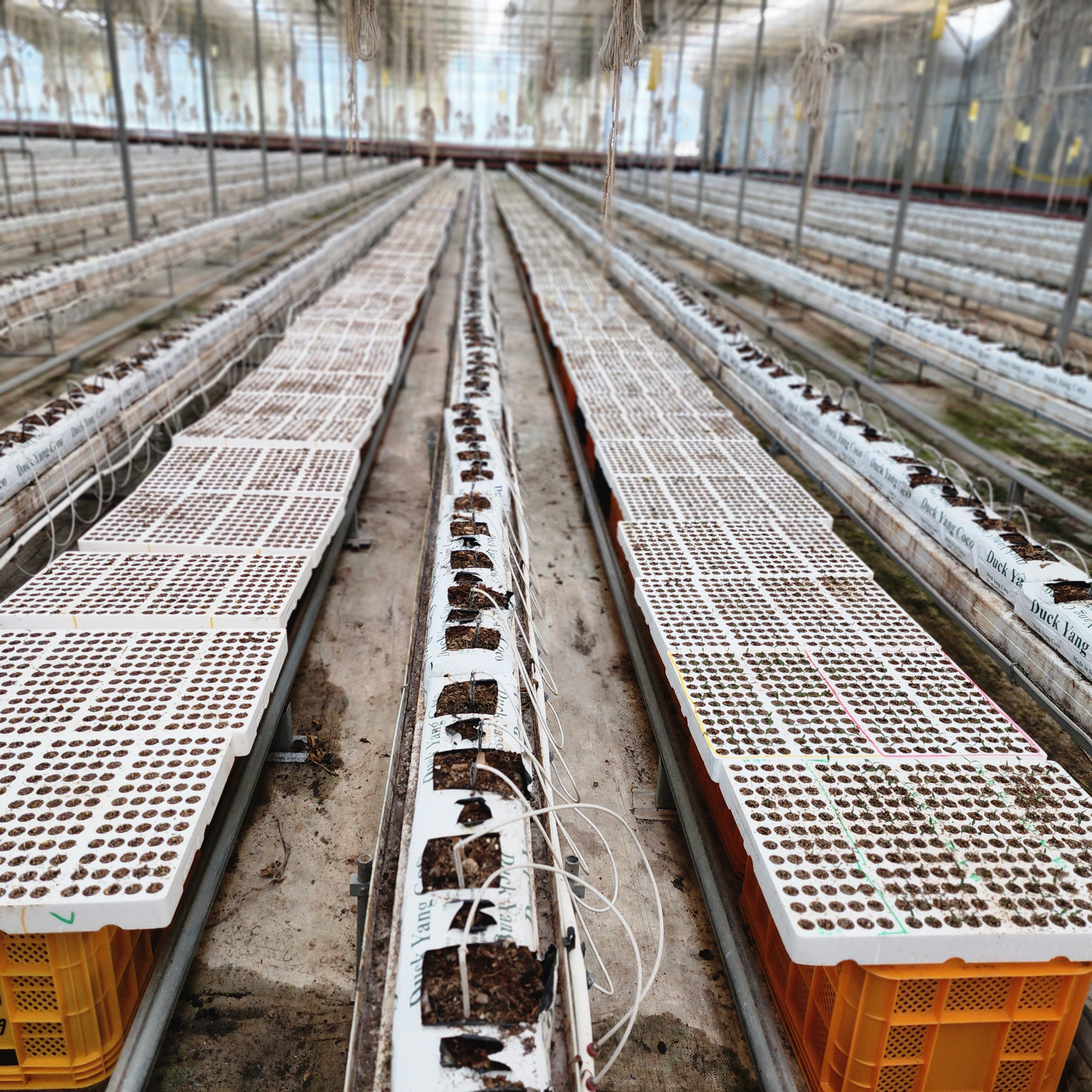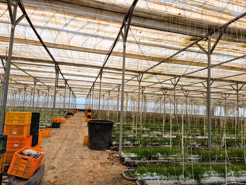 1,인력4명 드리퍼 가운데로 옮기며 주변 잡초 제거 2,드리퍼 고장난것 보는대로 교체 3,모종판 일부 정리