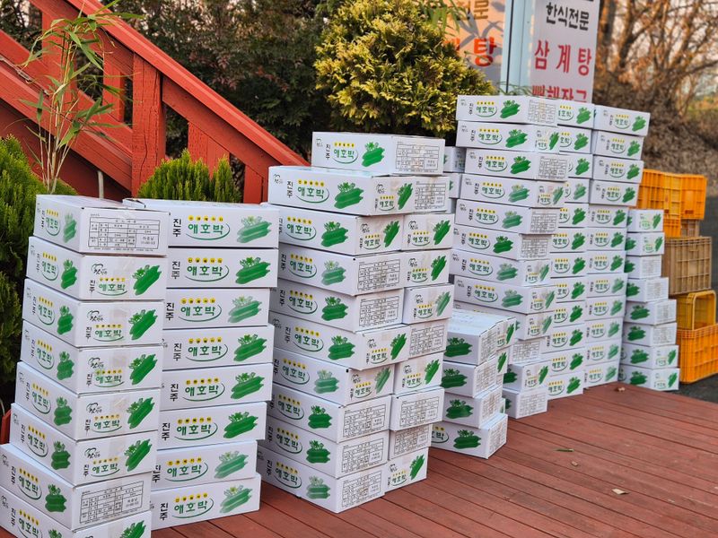 맑음 1)애호박 집게 작업 5줄 2)농식품박람회잠시 구경 3)무김치담그기 4)영농일지 5)하루루틴