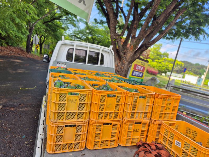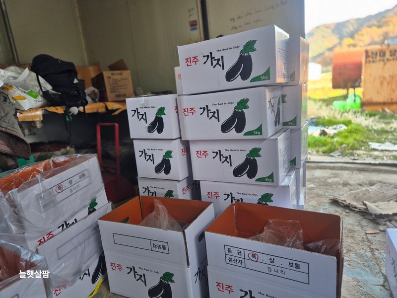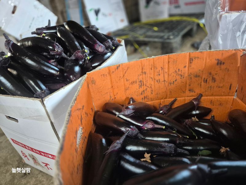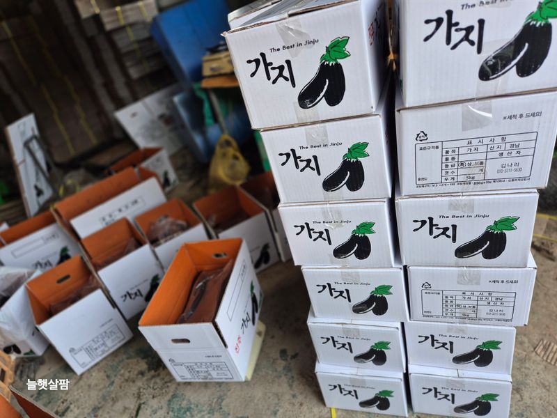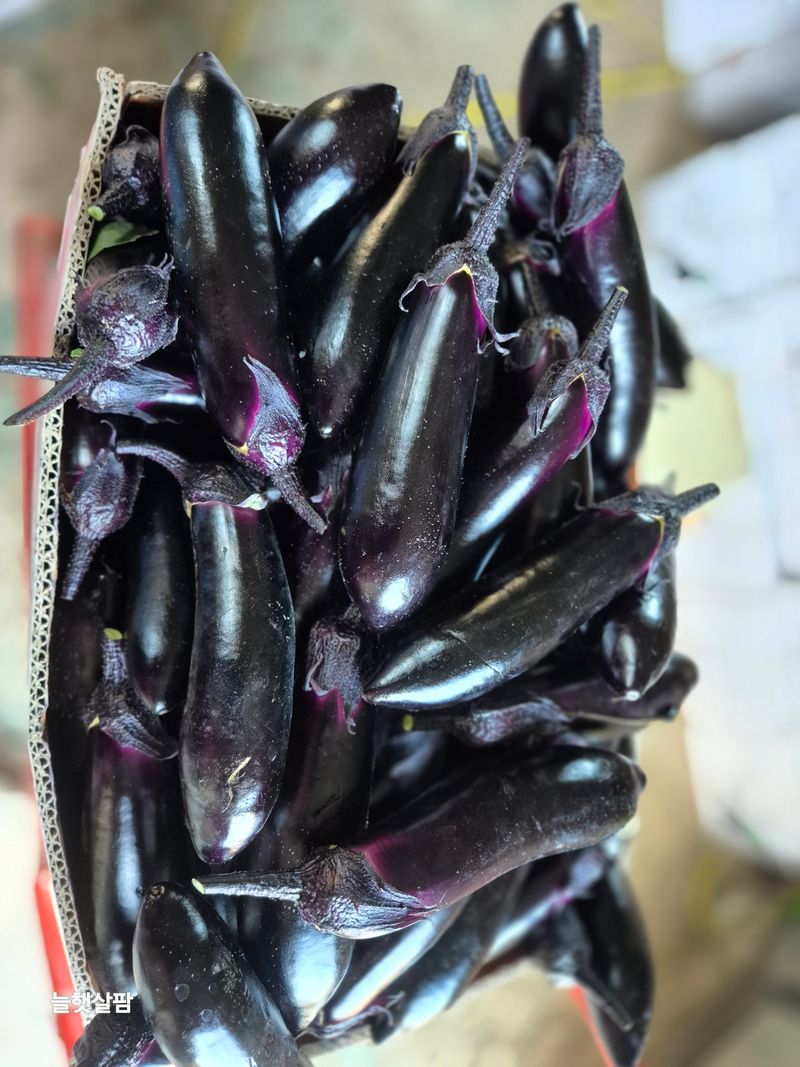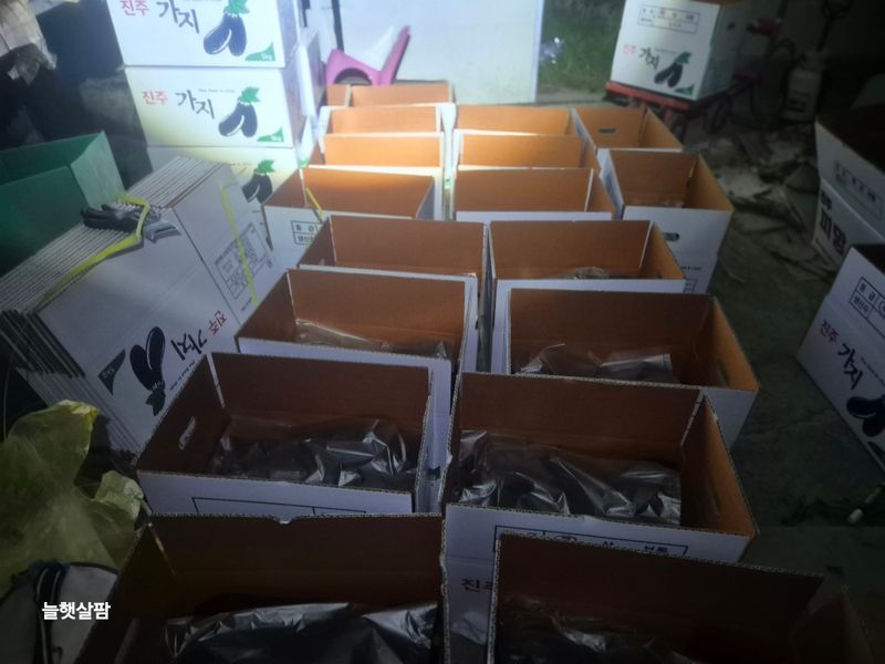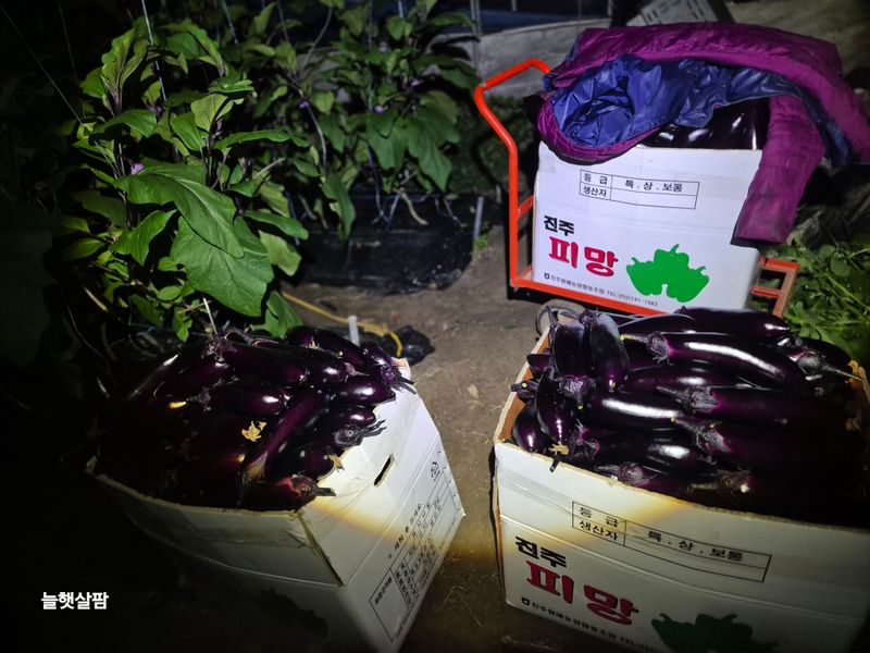 맑음 1,새벽 2시부터 아침6시30분 가지 수확과 포장 했음 2,스크린 열고 3,교반기 돌리고 4,지하수 스위치 캐고 5,로컬 준비 토란,케일 6,로컬 진열 7,염소 사료주기