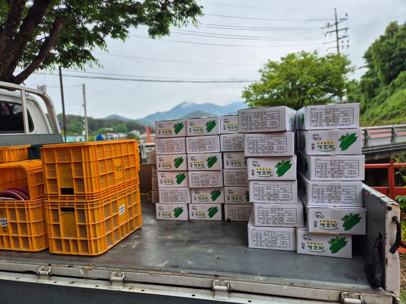 맑음 1)애호박 잡초 제거 2)로컬 상품 포장 3)염소 먹거리 챙겨 주기