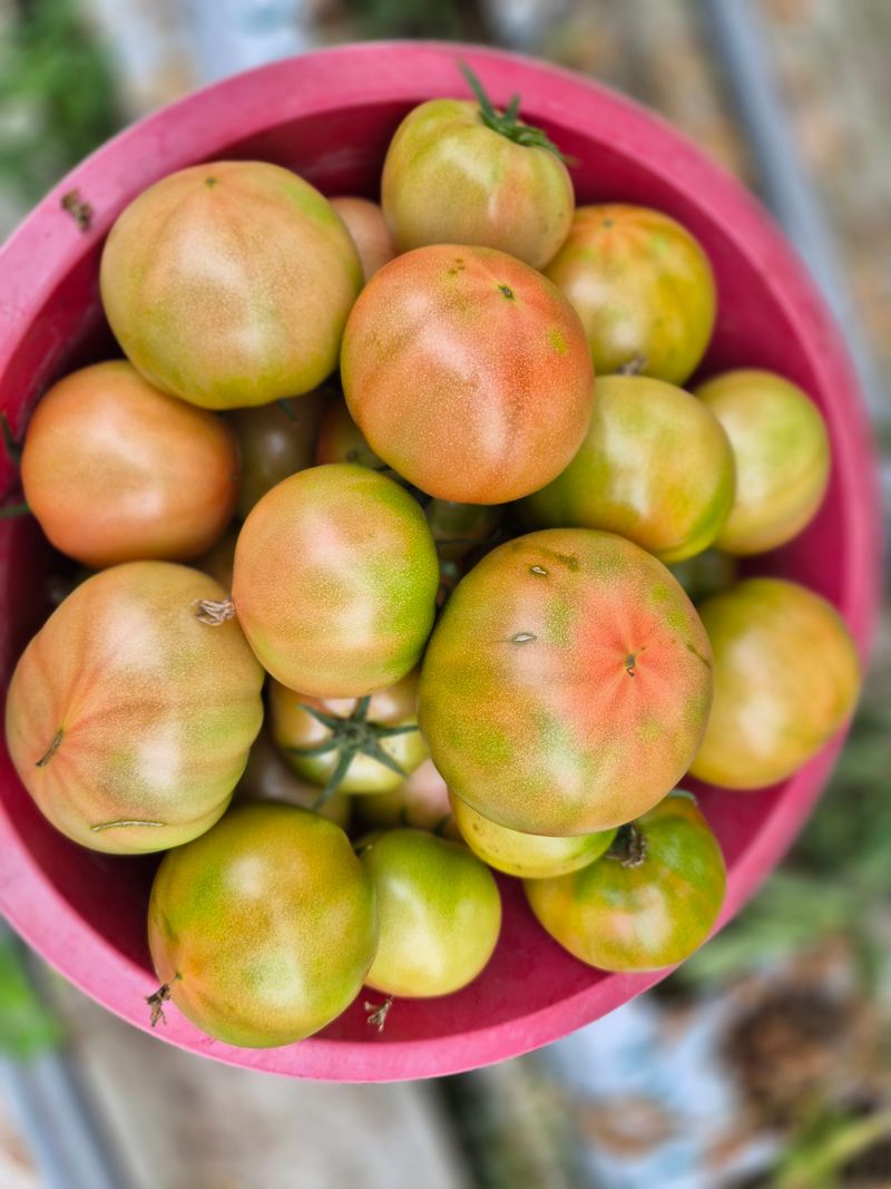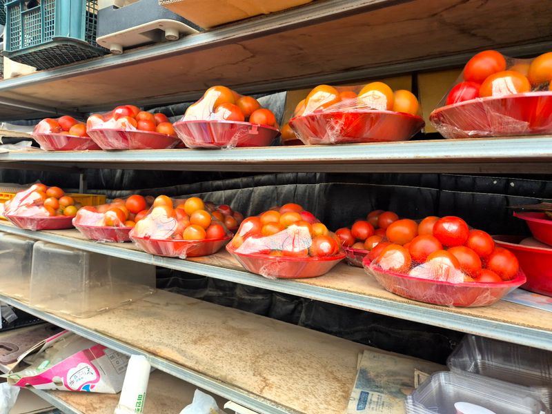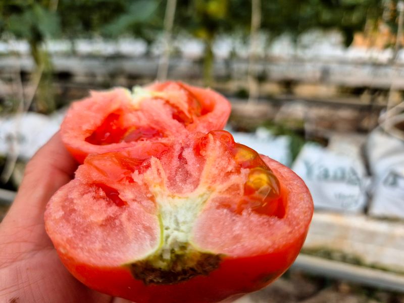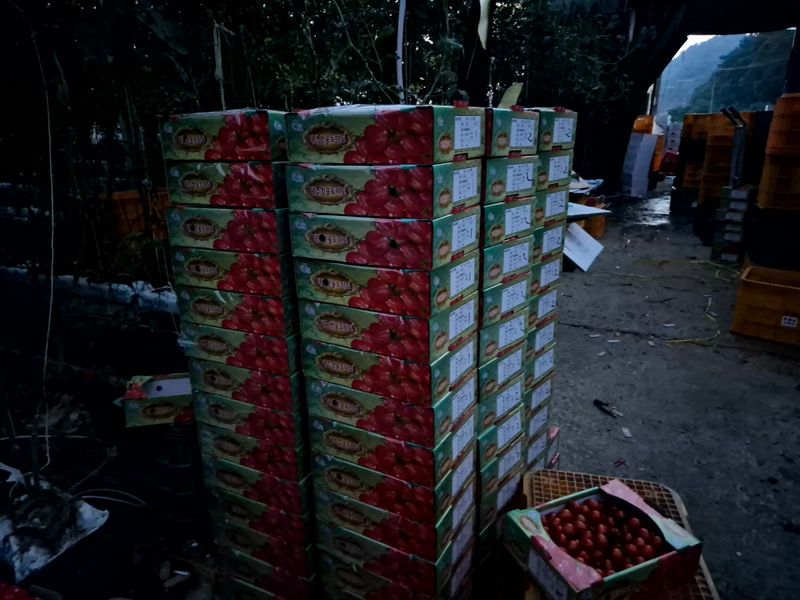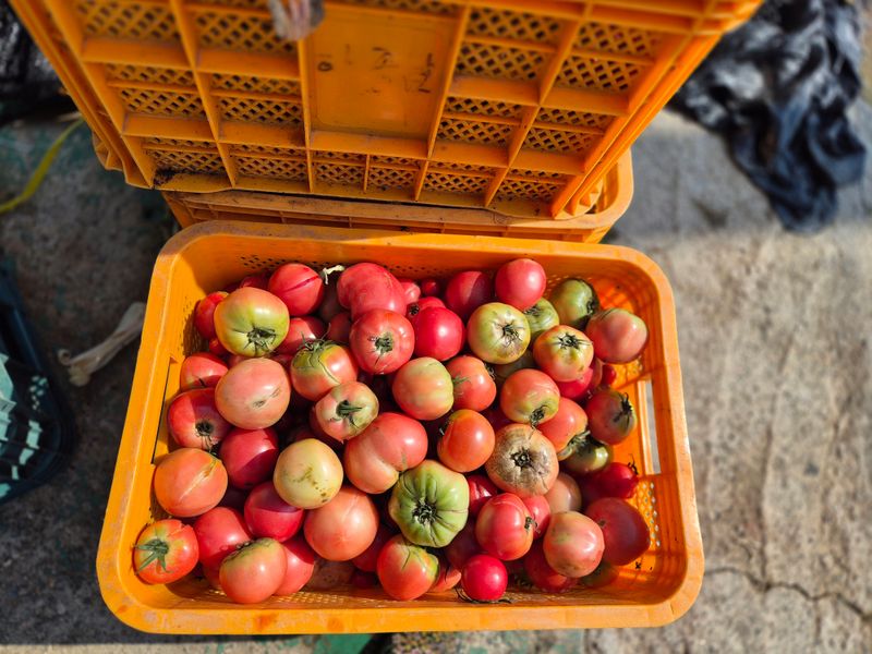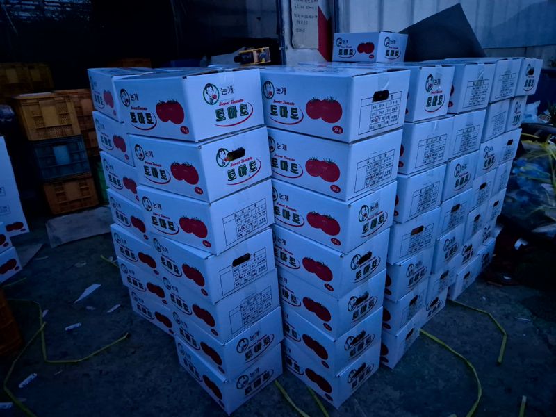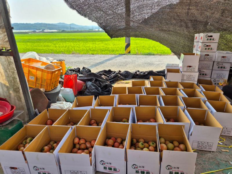 맑음 토마토 수확 선별 로컬(1명) 개천 카시미론 철거작업(5명)